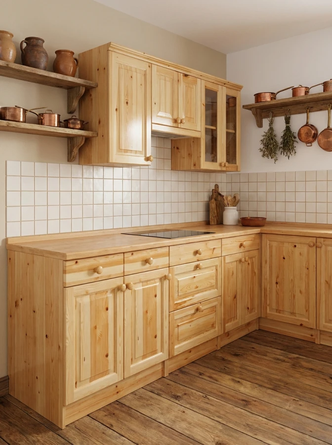 Настенный кухонный шкаф «Весури» из массива карельской сосны.