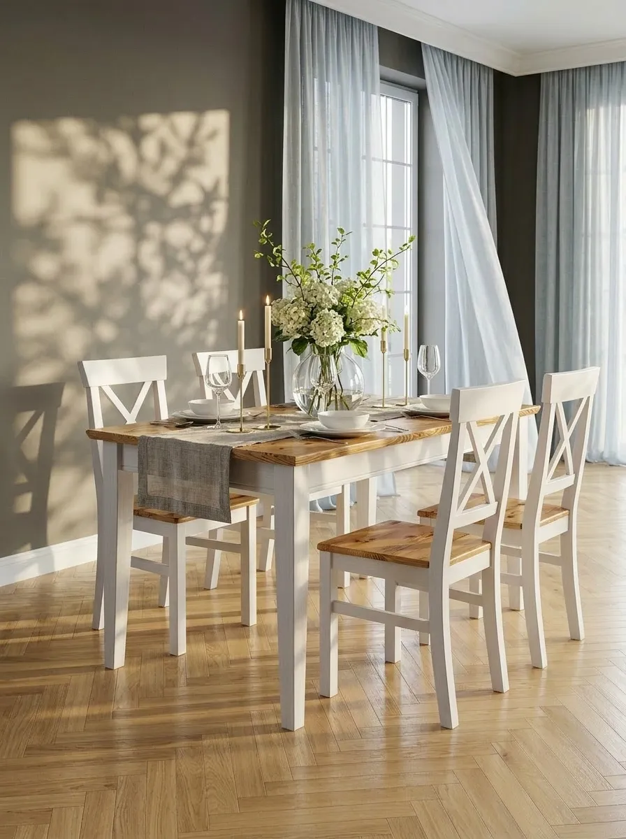 Стол изготовлен из экологически чистого материала — массива сосны. Это обеспечивает долговечность и надёжность конструкции. Кроме того, сосна обладает приятным ароматом, который создаёт уютную атмосферу в доме.