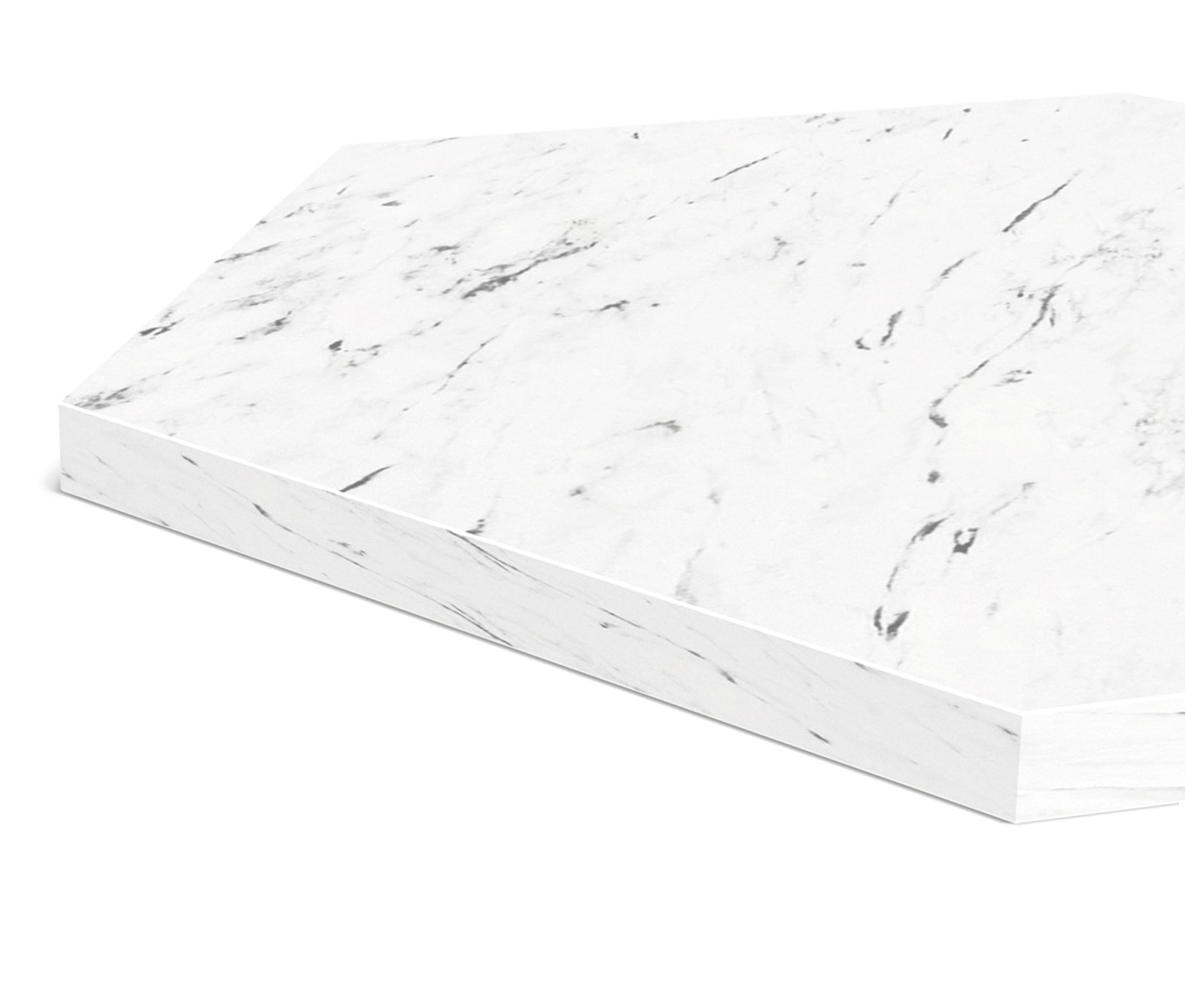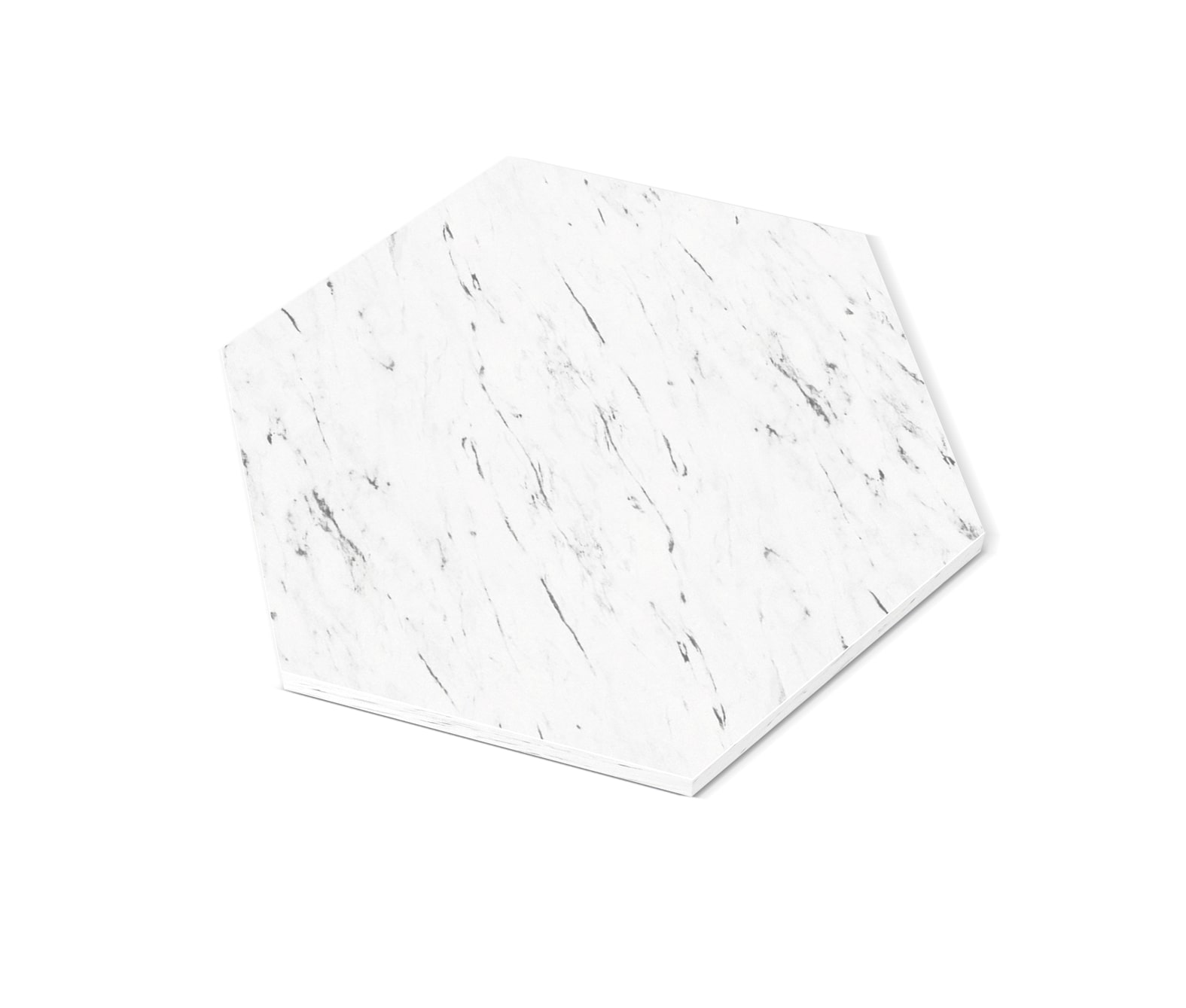 Столешница шестигранник из ЛДСП смотрится аккуратно и привлекательно. Цвет каждой столешницы имитирует текстуру натурального камня.