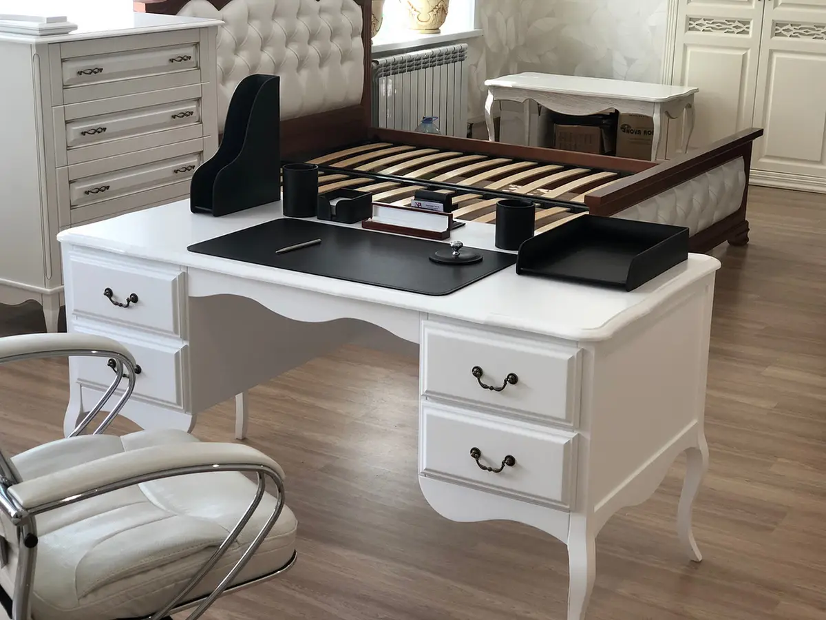 Красивый двухтумбовый стол на высоких ногах не оставит равнодушным.