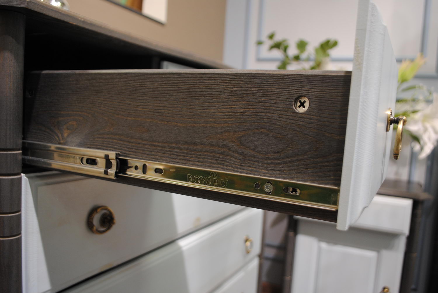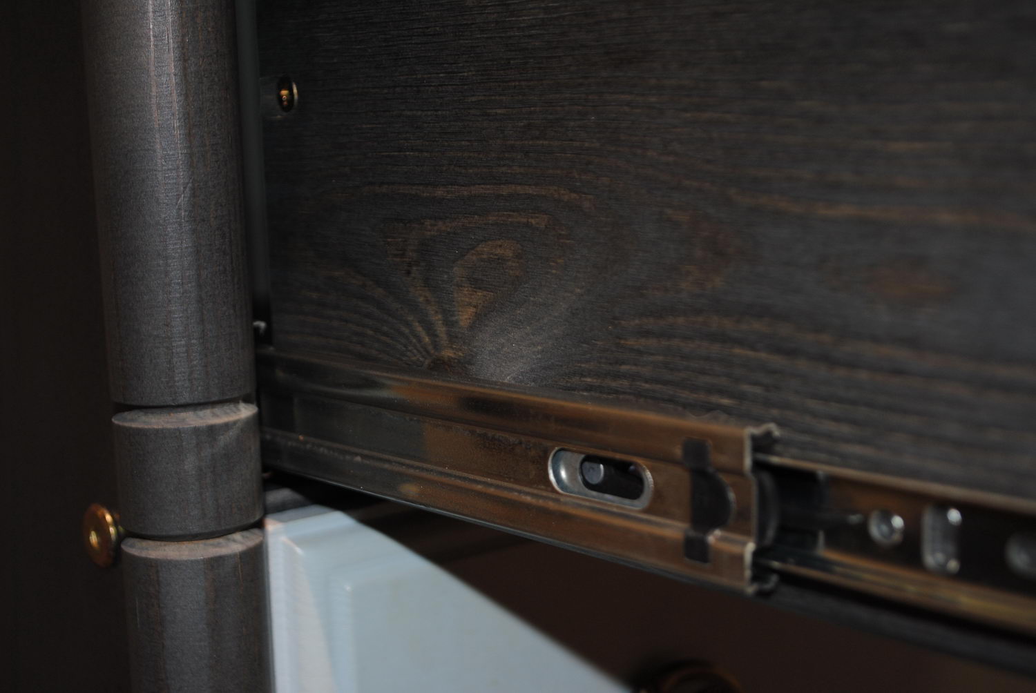 Фурнитура без доводчиков. Все ящики на шариковых направляющих полного выдвижения.