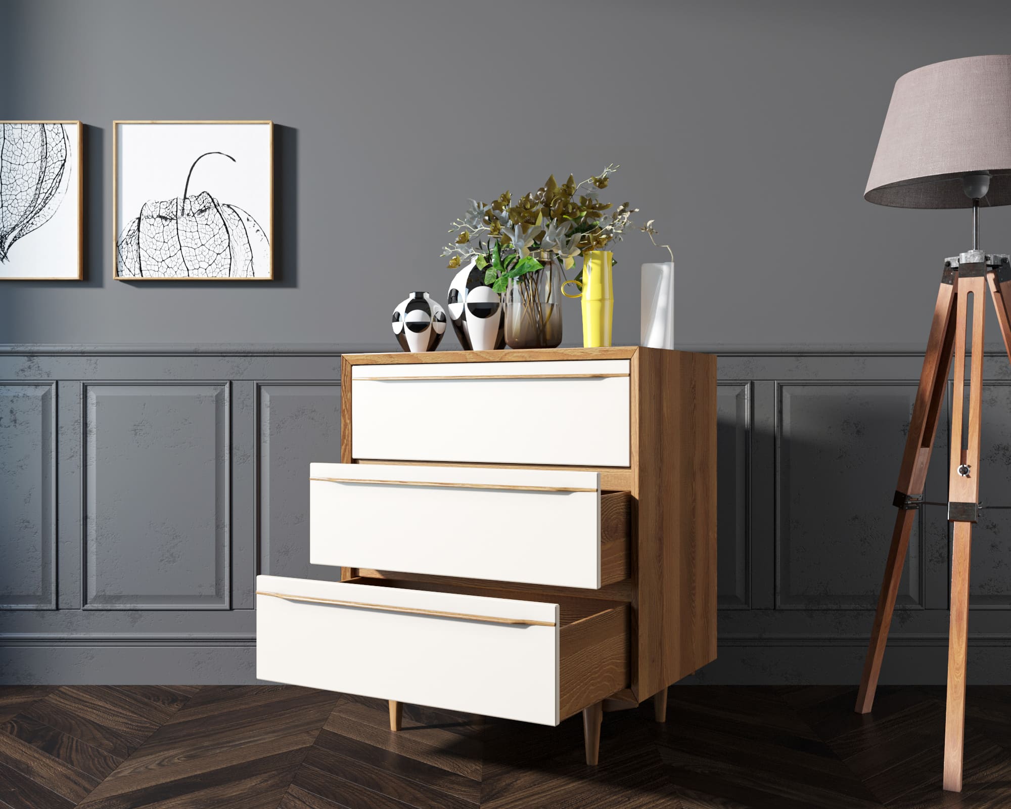 Лаконичный, миниатюрный и очень практичный комод "Bruni" сочетает в себе все эти характеристики. Благородство дерева и строгость линий наполнят Ваш дом особой атмосферой.