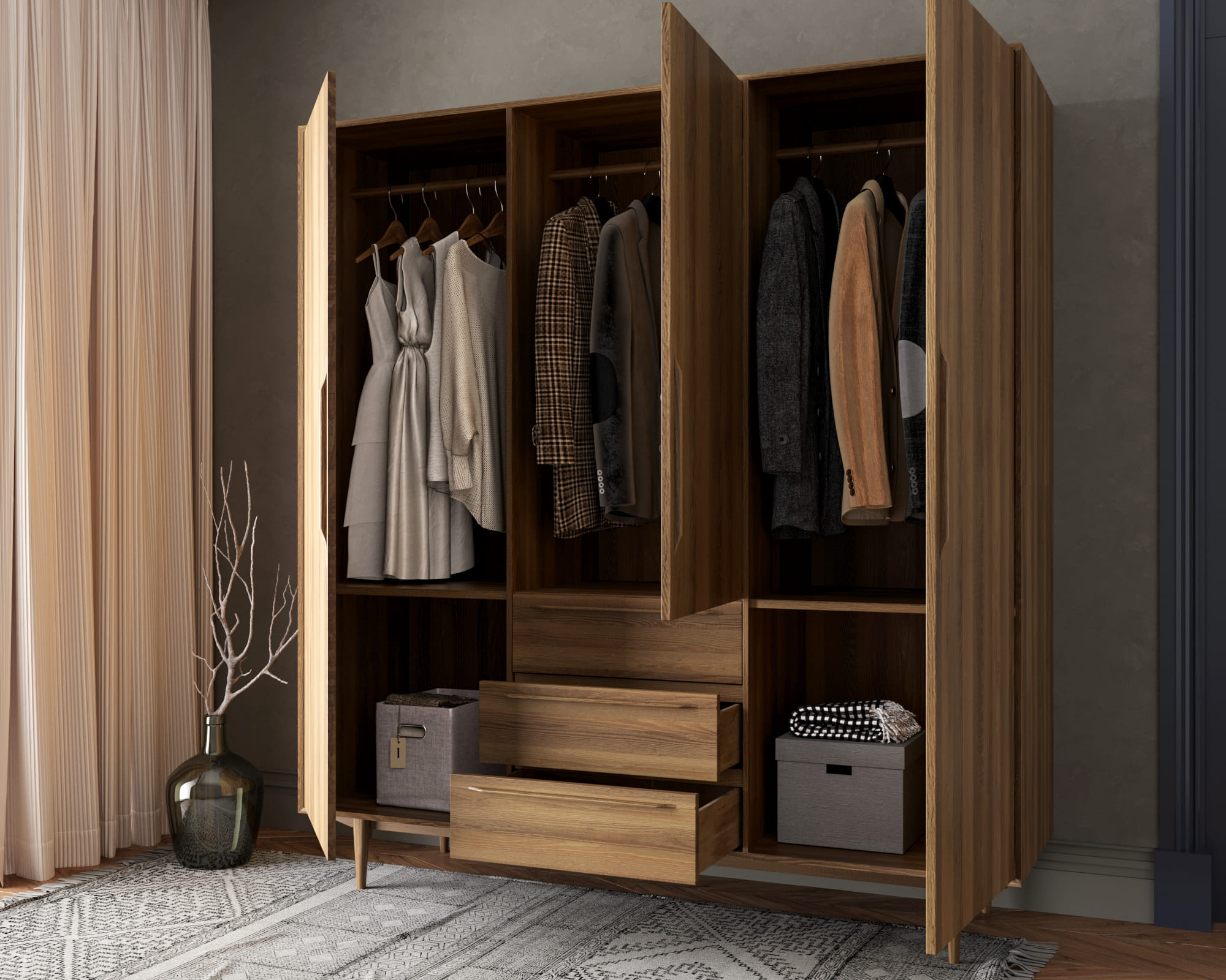 Трехстворчатый шкаф "Bruni" определенно станет главным функциональным предметом Вашей спальной зоны, неся в себе лаконичность, стиль и практичность и будет прекрасным дополнением в спальне в скандинавском стиле.