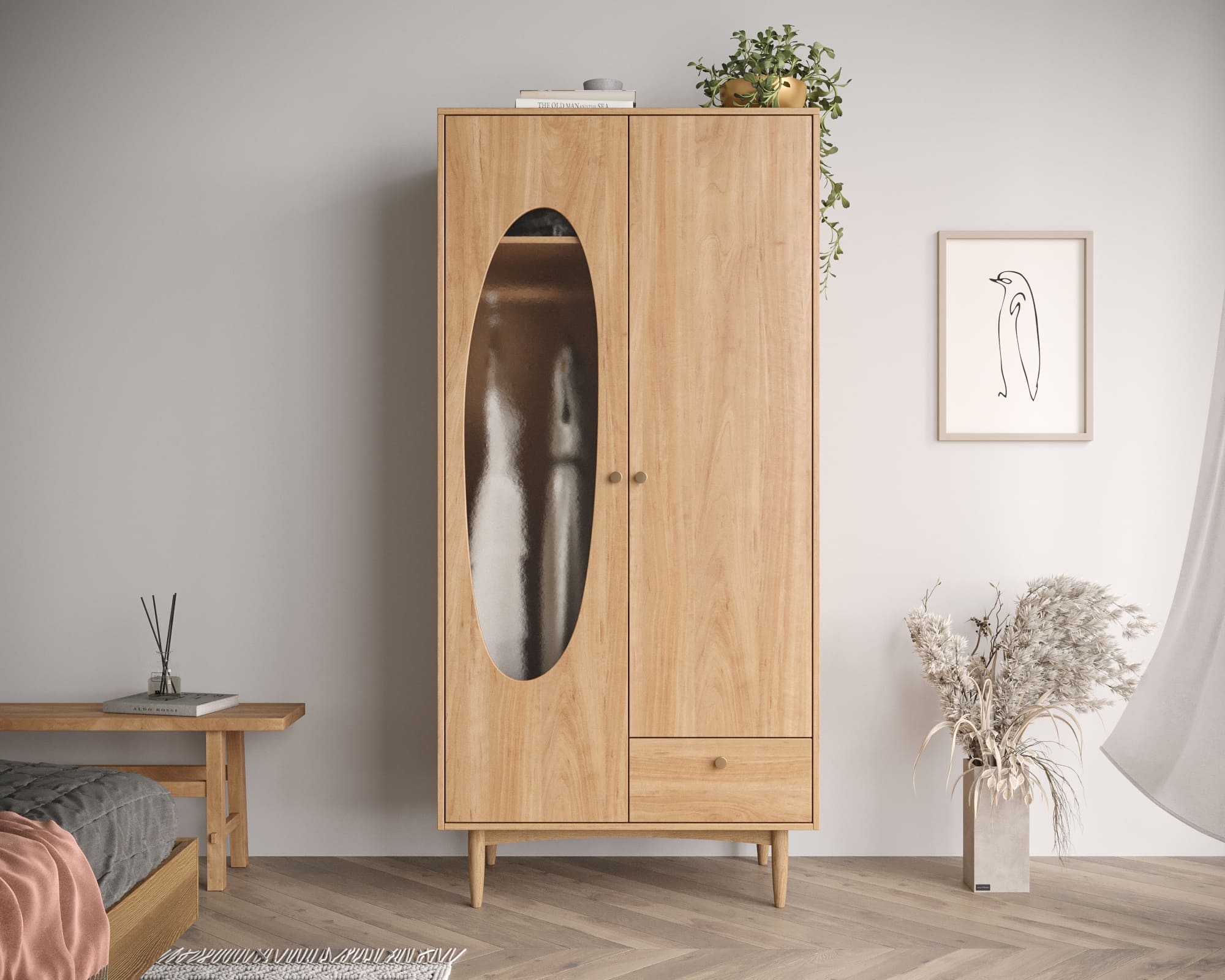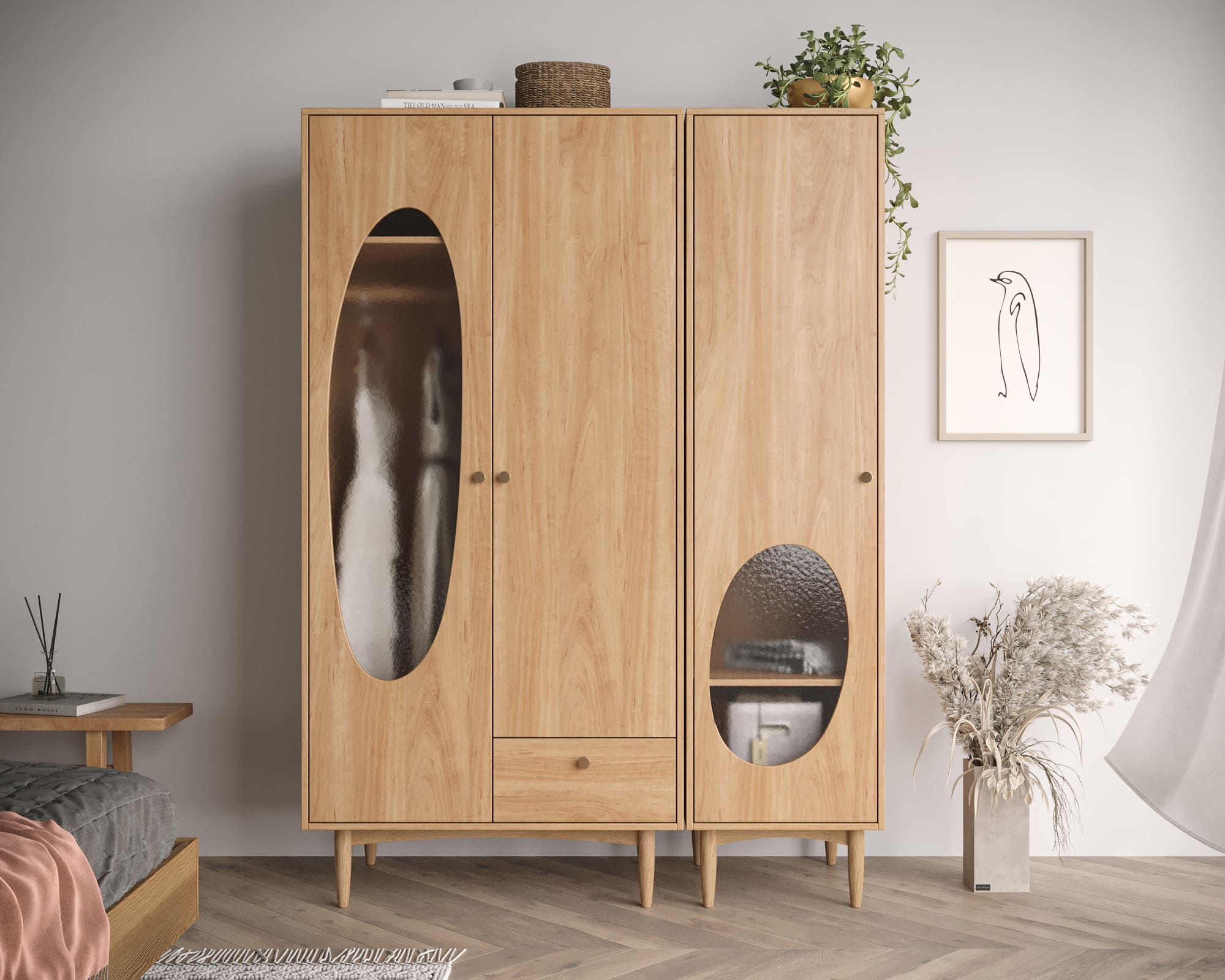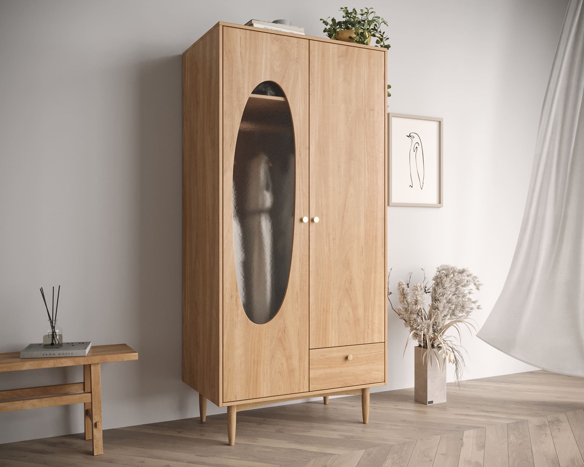 Необычный дизайн шкафа с высокими ножками из массива ясеня