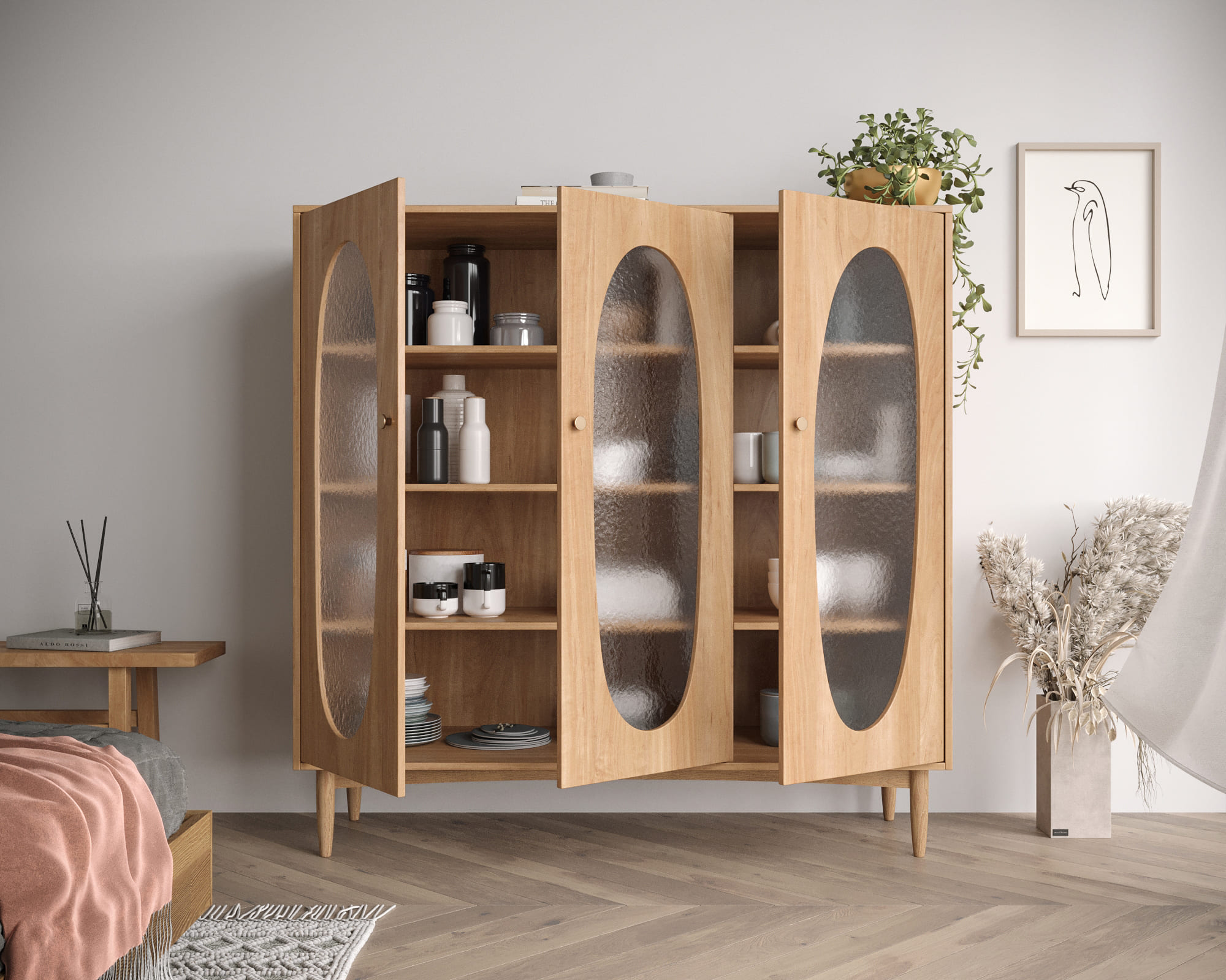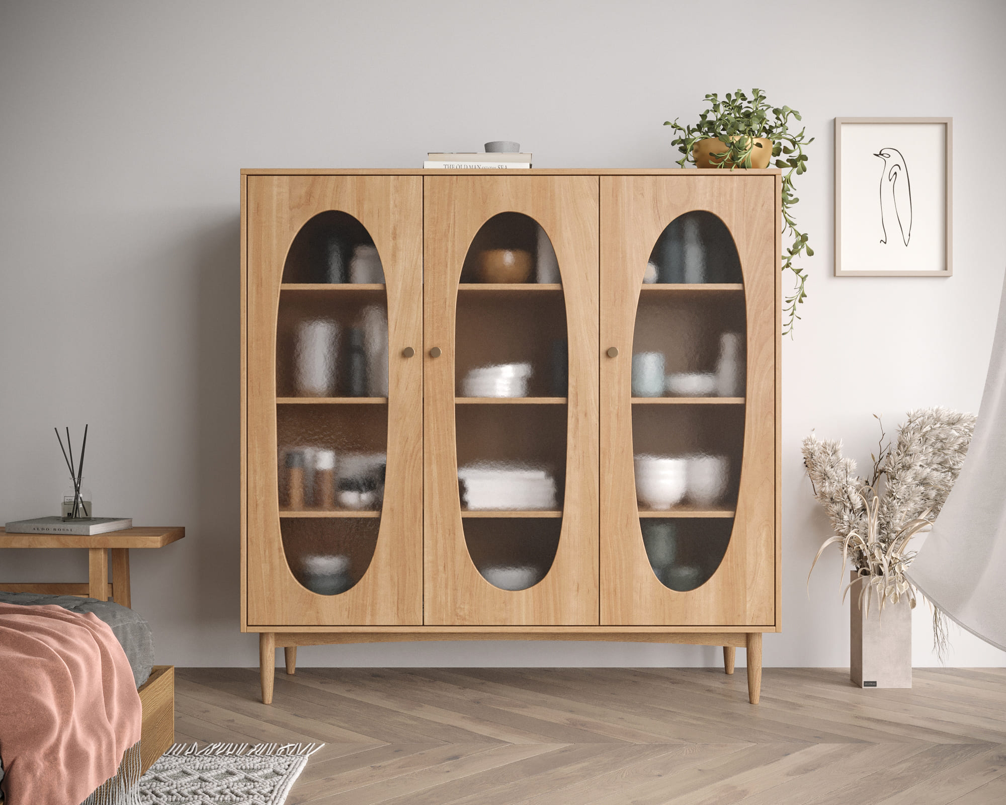 Высокие ножки из массива ясеня придают шкафу легкость и воздушность.