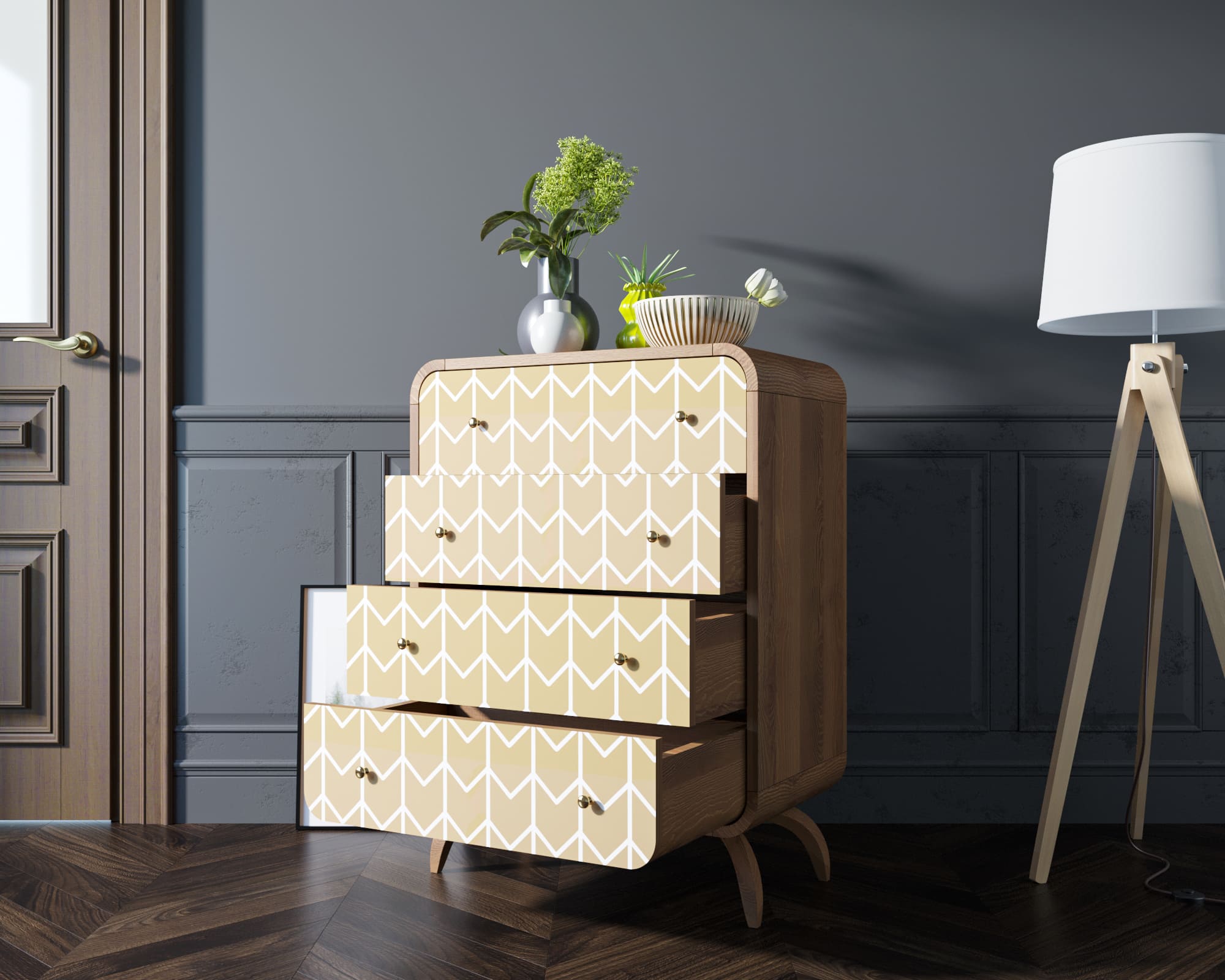 В этой коллекции вы найдёте комоды разных размеров: широкие, высокие и низкие. Все они имеют необычный дизайн с закруглёнными формами и фасадами с принтами. У изделий нет прямых углов, что придаёт им особый шарм.