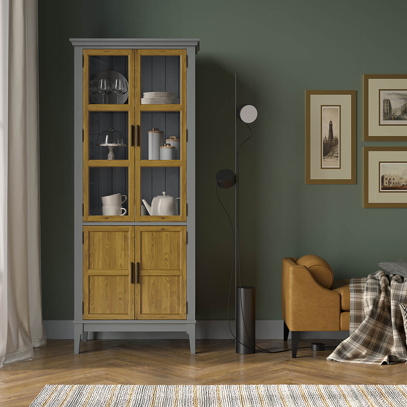 шкаф для посуды «Квадро-С» 22GT-185 из массива сосны и стекла.