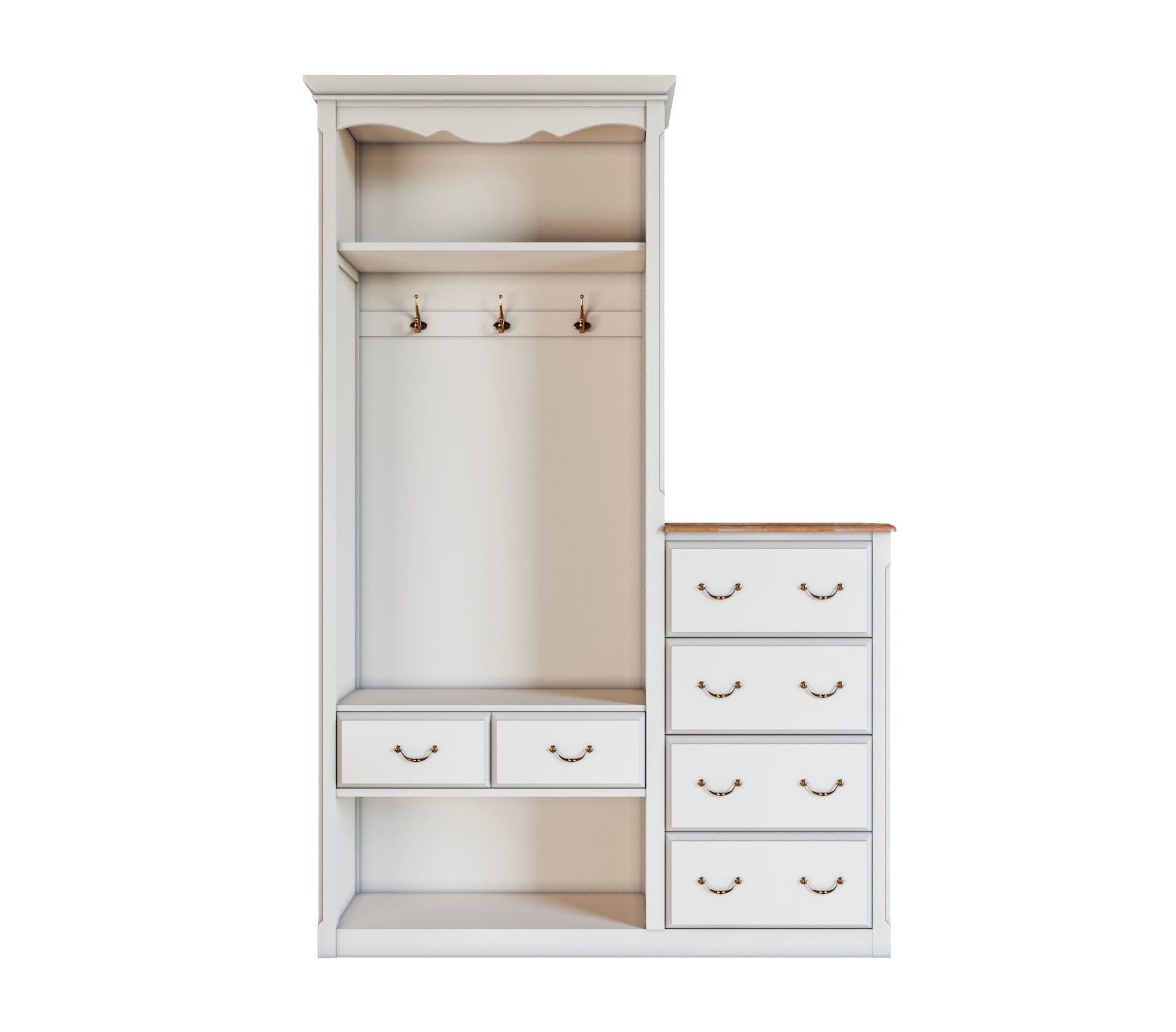 Наполнение: длинная шляпная полка, а под ней 4 крючка.