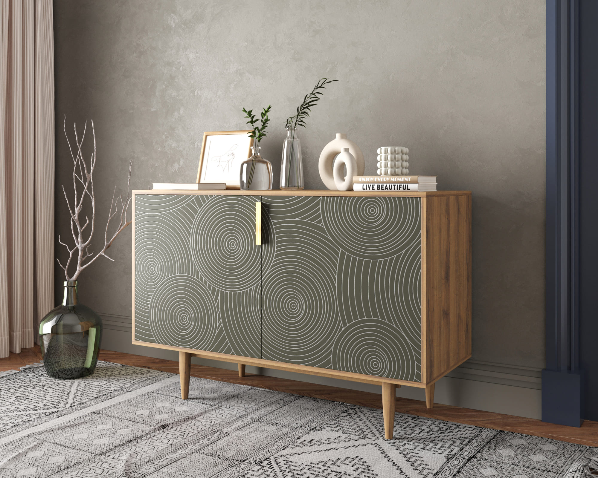 Комод выполнен в спокойном скандинавском стиле,а индивидуальный дизайн помогут создать цветные фасады с гравировкой.