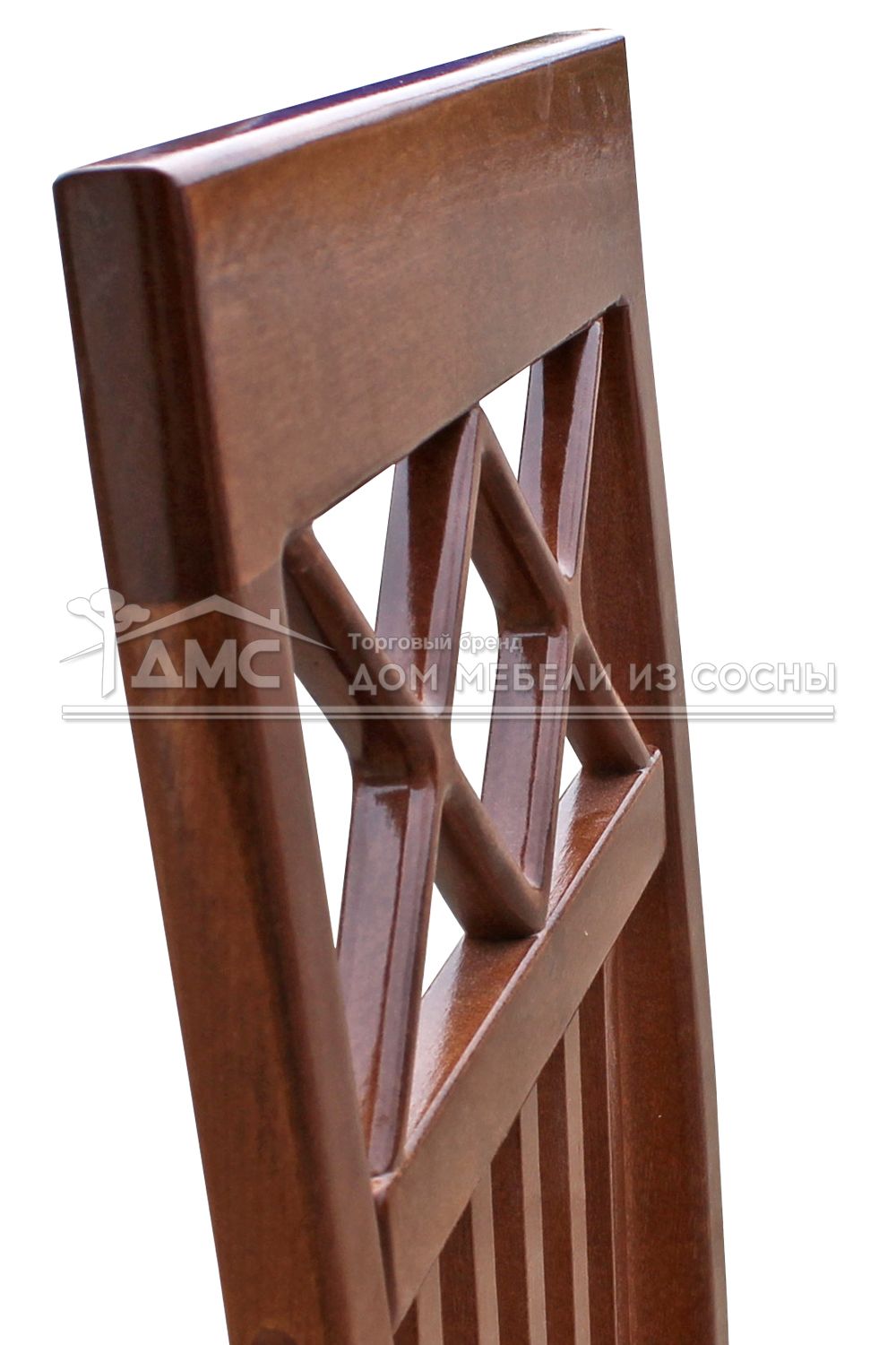 Украшением стула является высокая спинка с реечной поверхностью. Комбинация элементов придаёт внешнему виду больше изящности и утончённости.