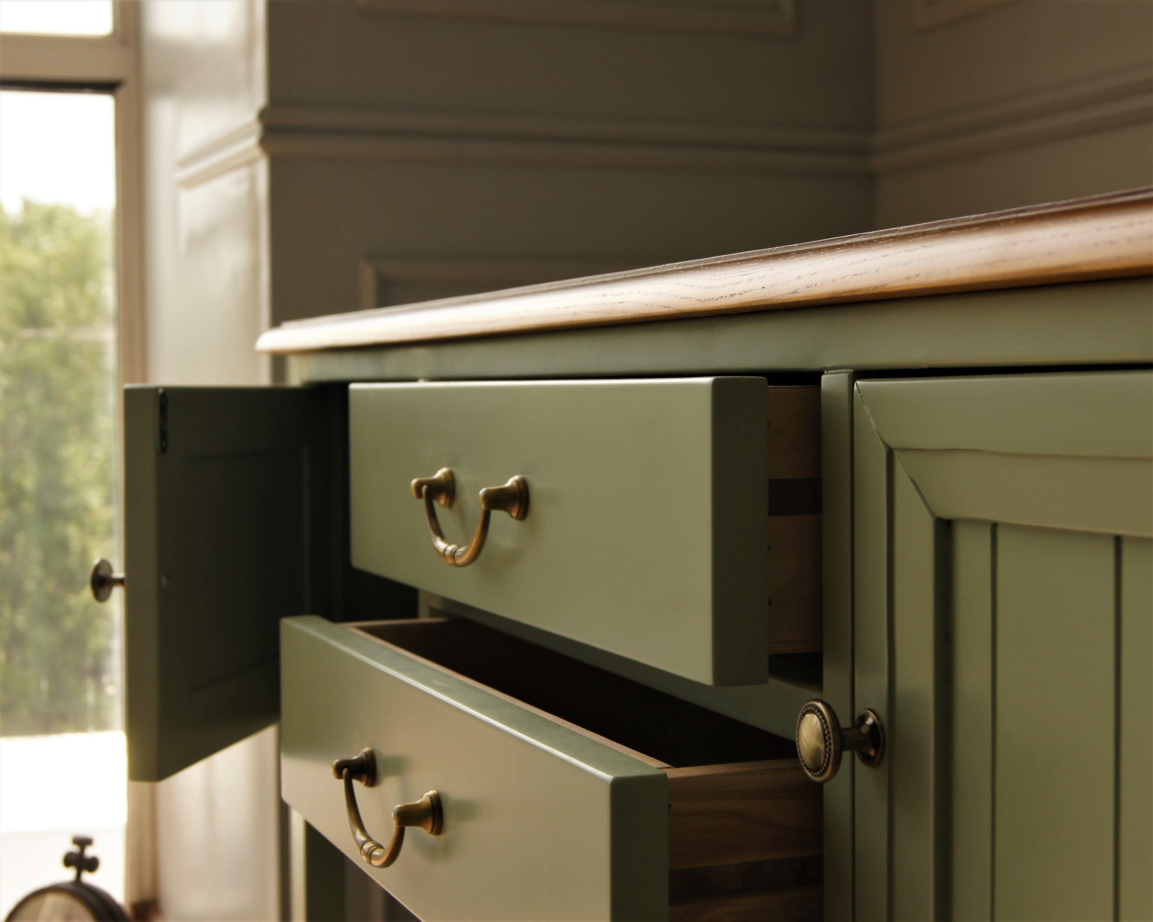 Наполнение: два выдвижных ящика и два распашных фасада.