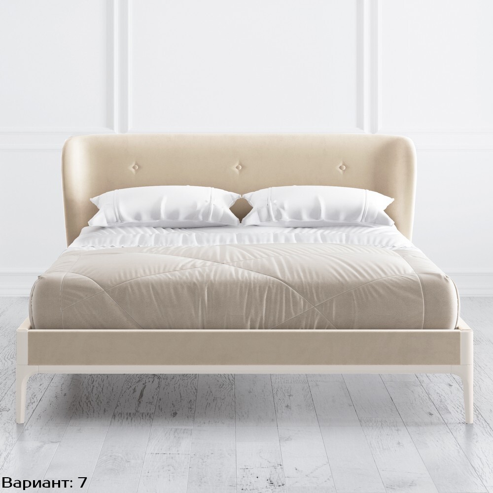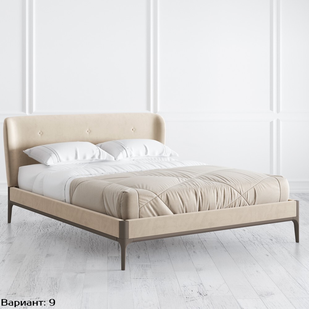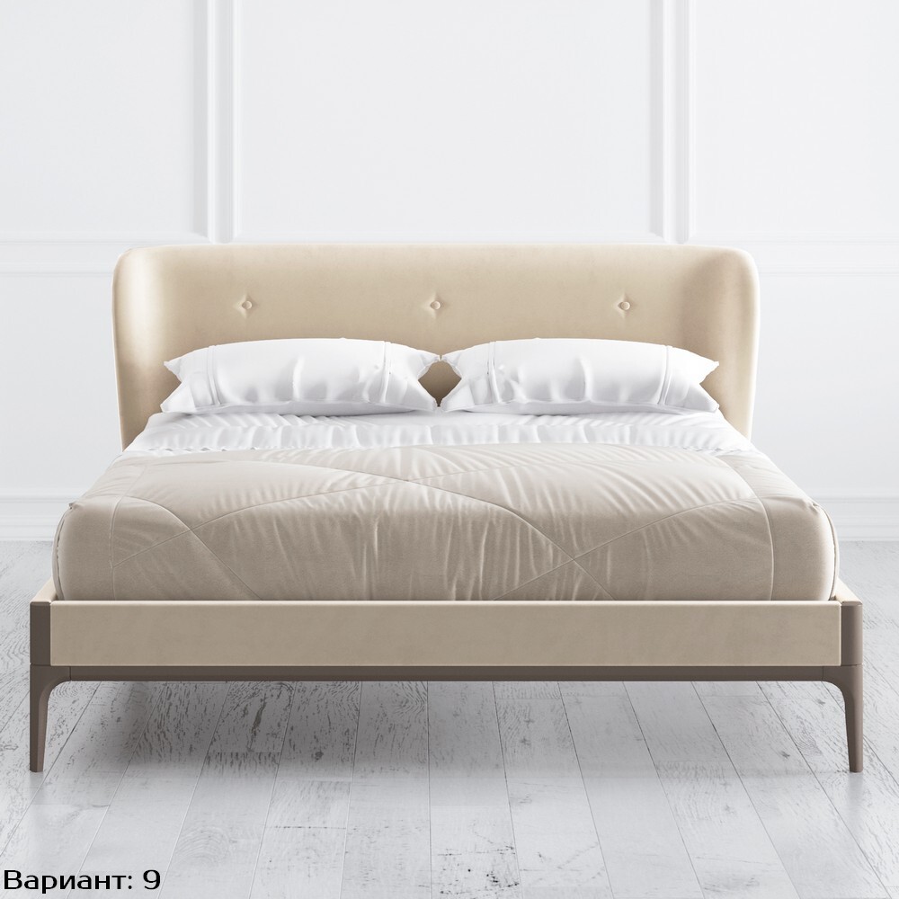 Кровать с мягкими царгами, в ткани Bella 01. Вариант 7 - ножки окрашены в бежевый цвет (K07 - ближайший RAL 9001), вариант 9 - ножки окрашены в коричневый цвет (K09 - ncs 4005 y50r). На изображениях представлена модель с размером спального места 160*200 см.
