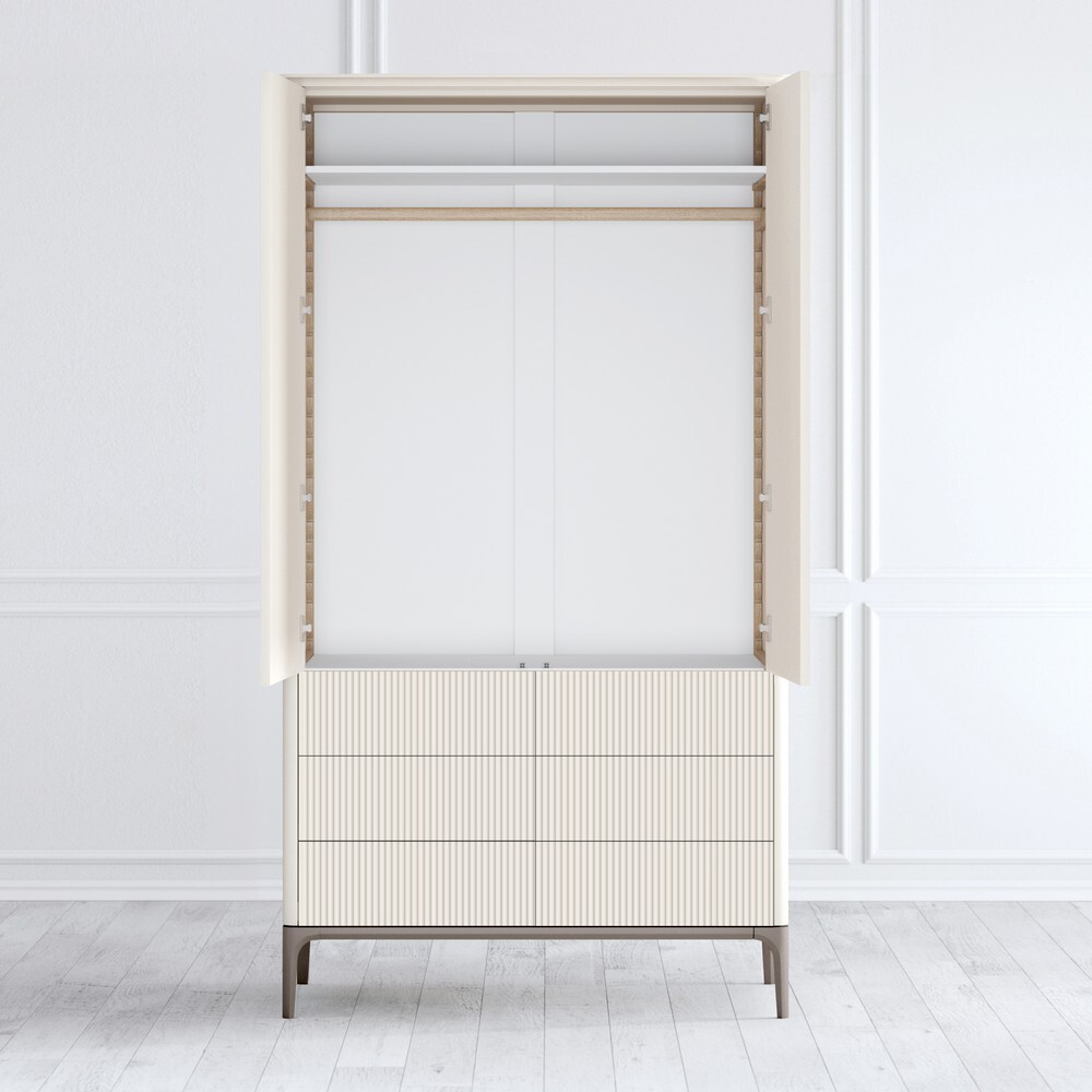Верхняя часть окрашена в цвет светлый беж (K07 - ближайший RAL 9001), низ в коричневый цвет (K09 - ncs 4005 y50r). Двери и ящики имеют систему открывания TIP-ON, открывание дверей и ящиков простым нажатием на фасад.