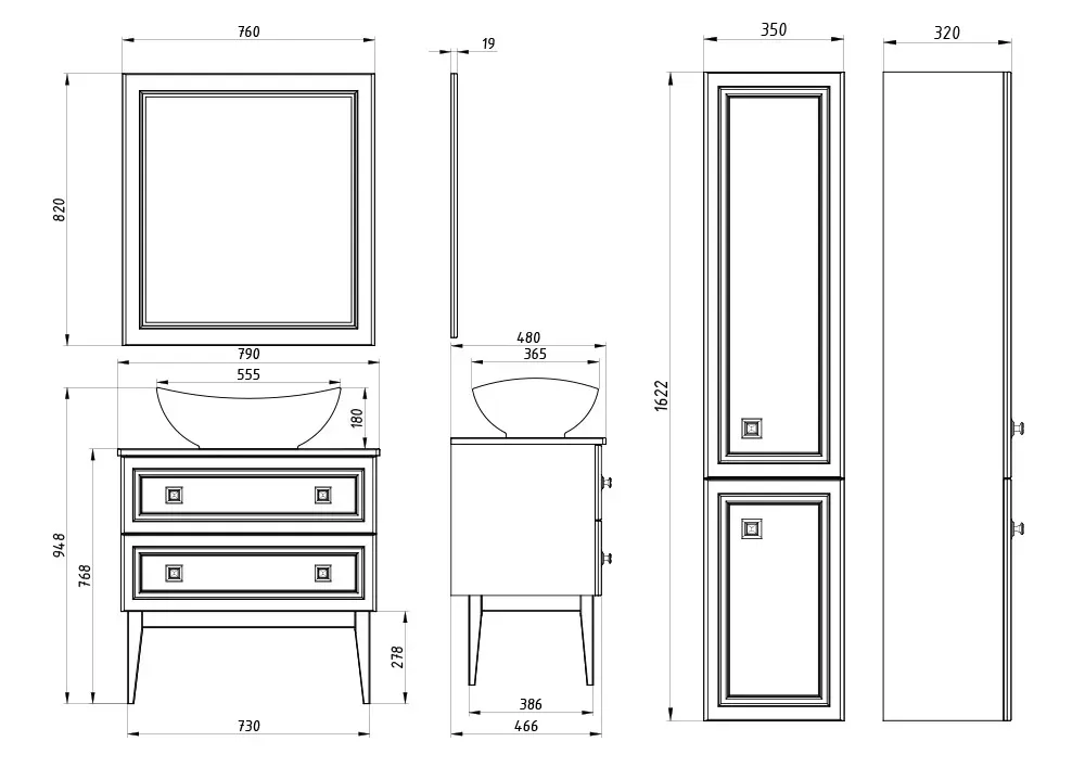 Ш 350 x Гл 320 x В 1622