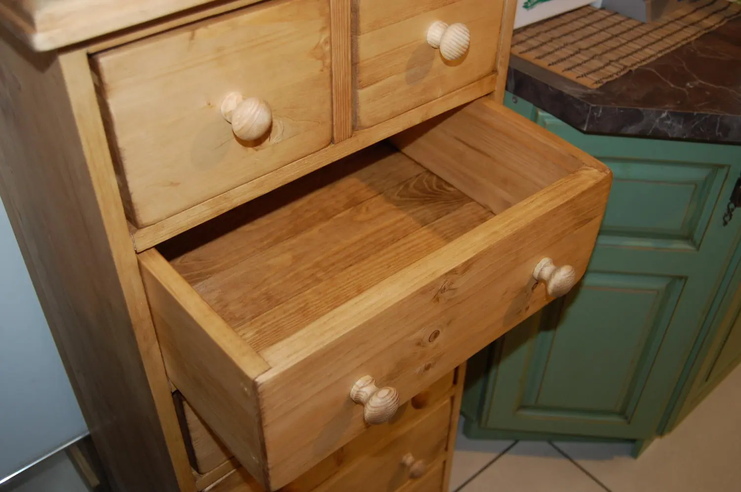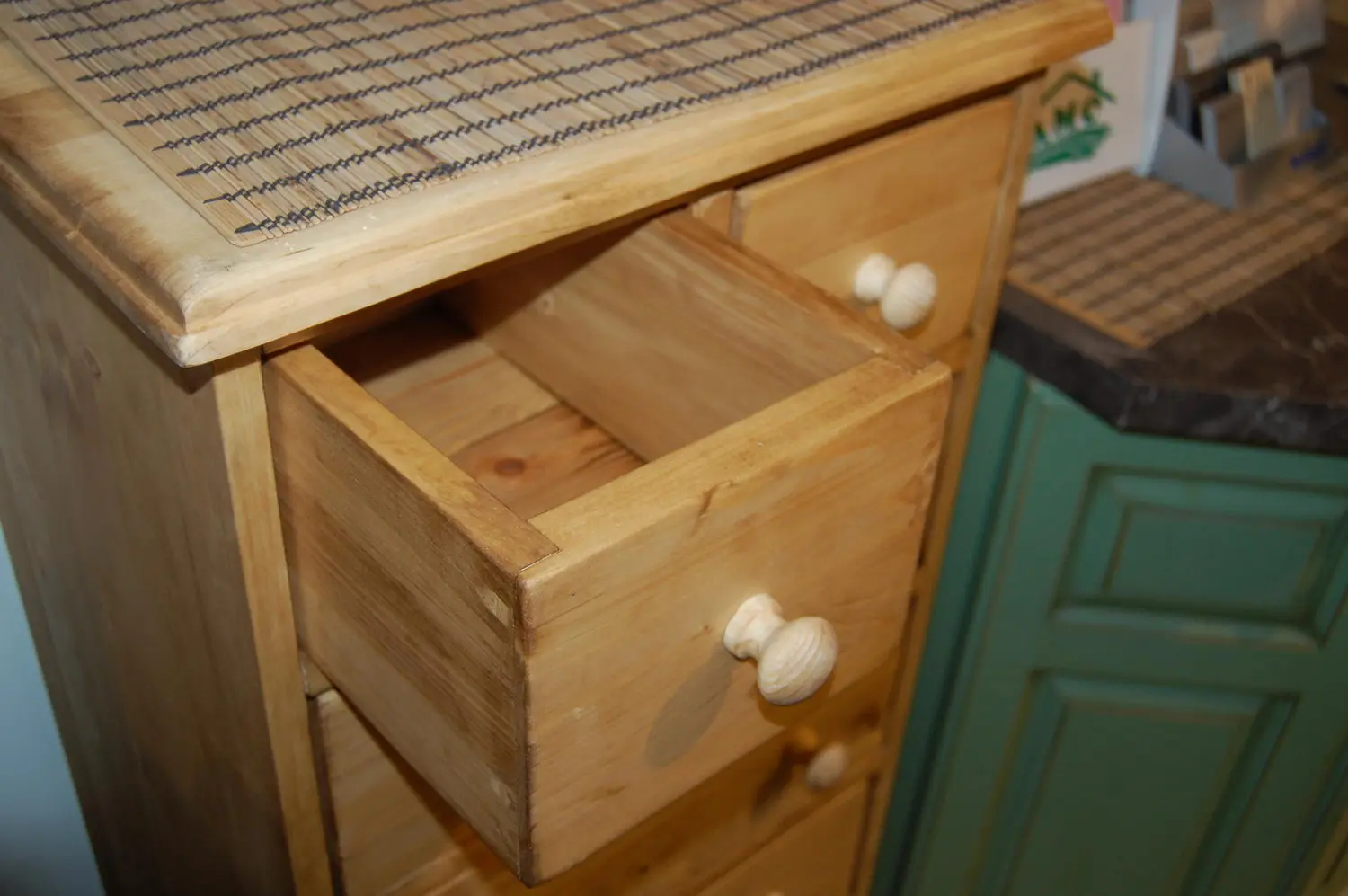 Все части мебели сделаны из массива сосны. Включая и задние стенки и донышки ящиков.