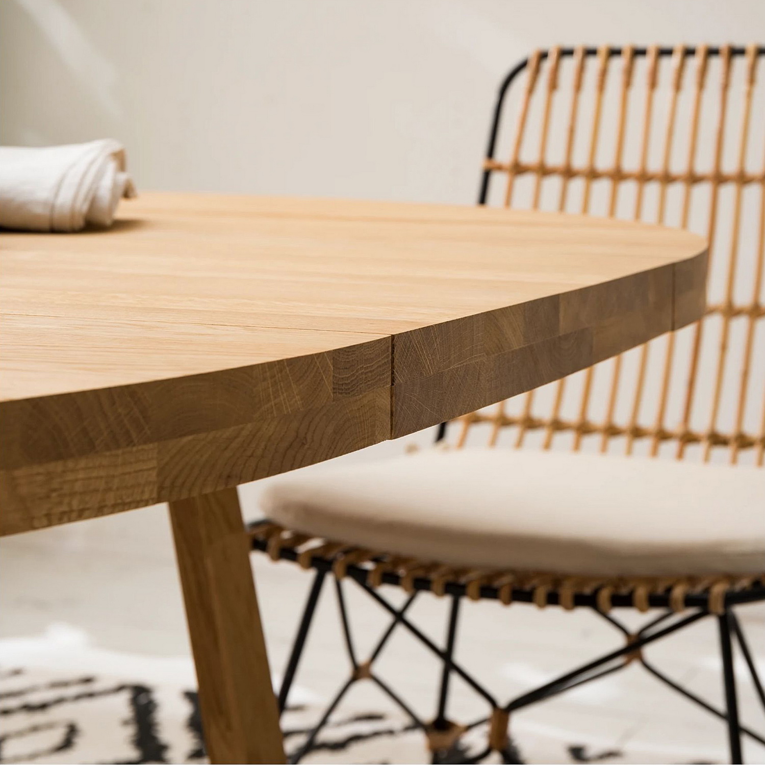 Круглый обеденный стол «Мерби Р» в скандинавском стиле изготавливается из долговечного природного материала – массива дуба. Стол отличается простым и стильным дизайном, а, главное, вместительностью – за ним могут свободно разместиться до 6 человек. Стол устойчив благодаря основанию-крестовине.