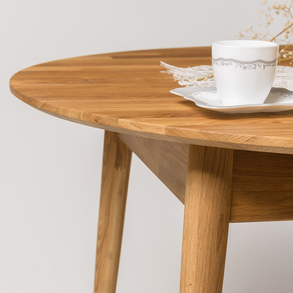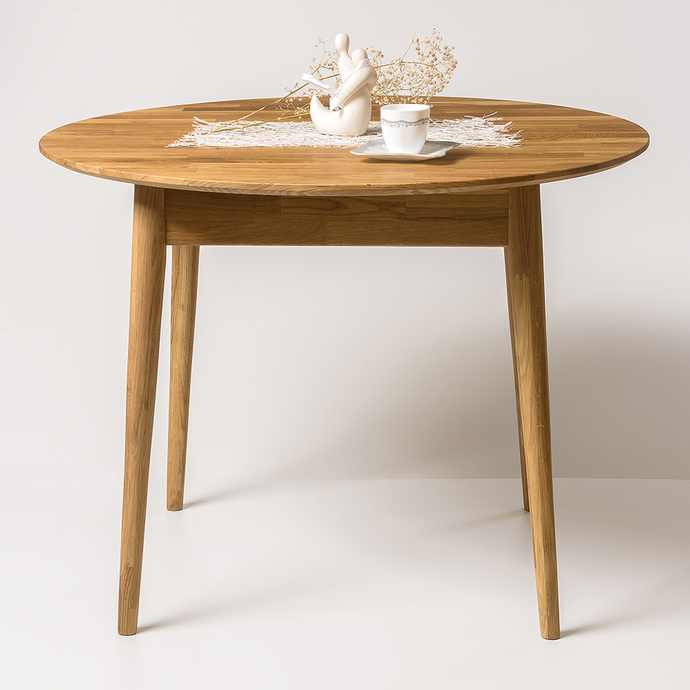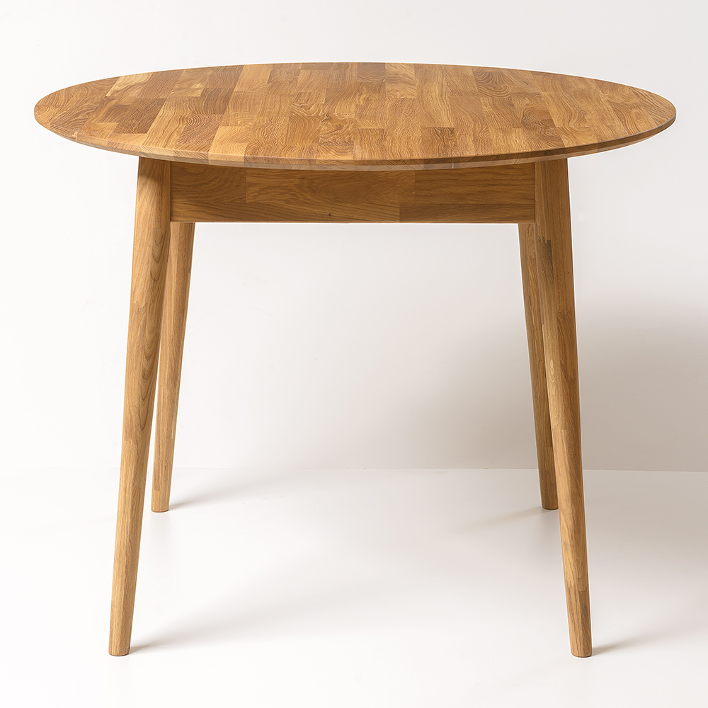 Круглый обеденный стол «Сканди 3 D1100» в скандинавском стиле изготавливается из долговечного природного материала – массива дуба. Стол отличается простым и стильным дизайном, а, главное, вместительностью – за ним могут свободно разместиться до 6 человек.