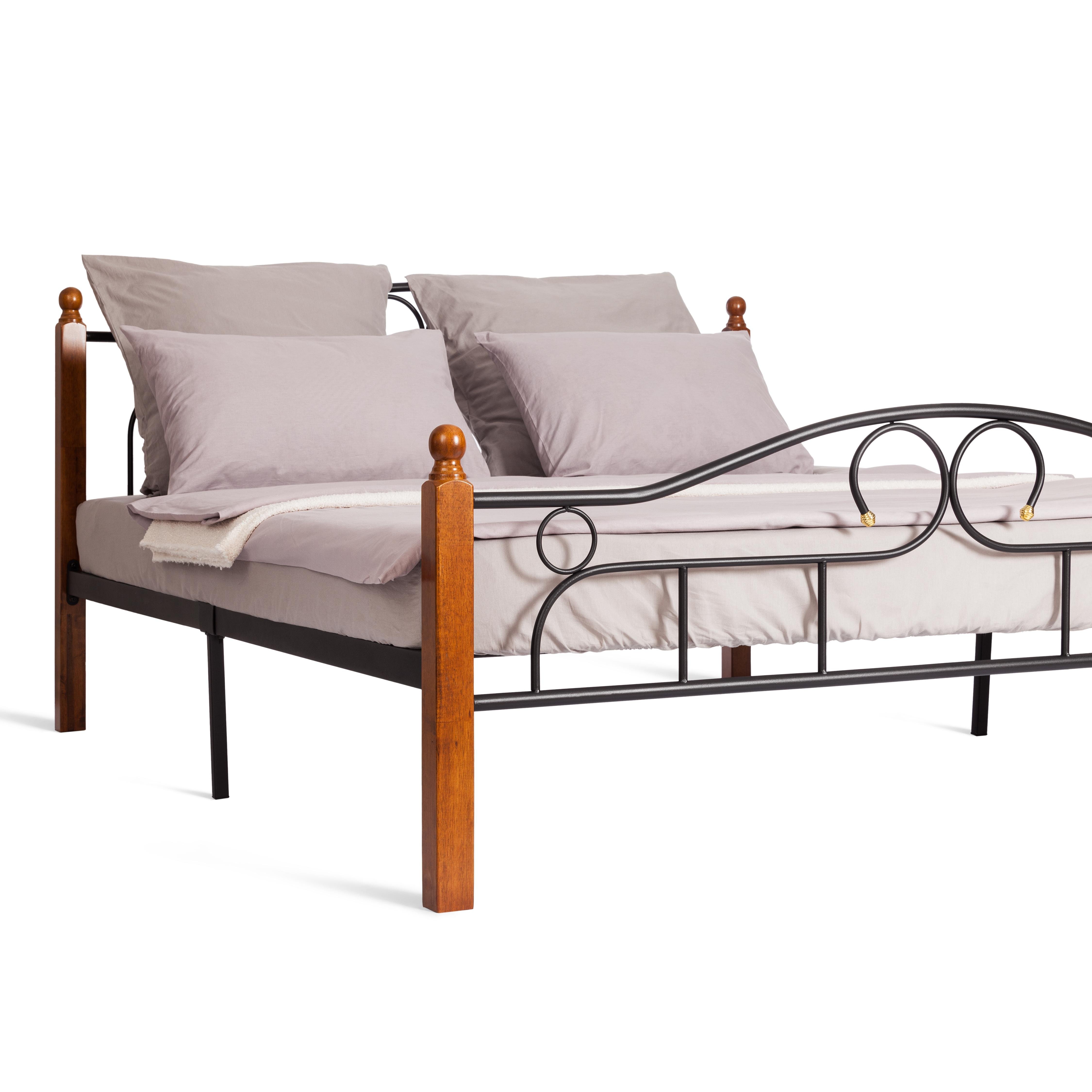 - Отделка: дерево гевея/металл, 160*200 см (Queen bed), красный дуб/черный