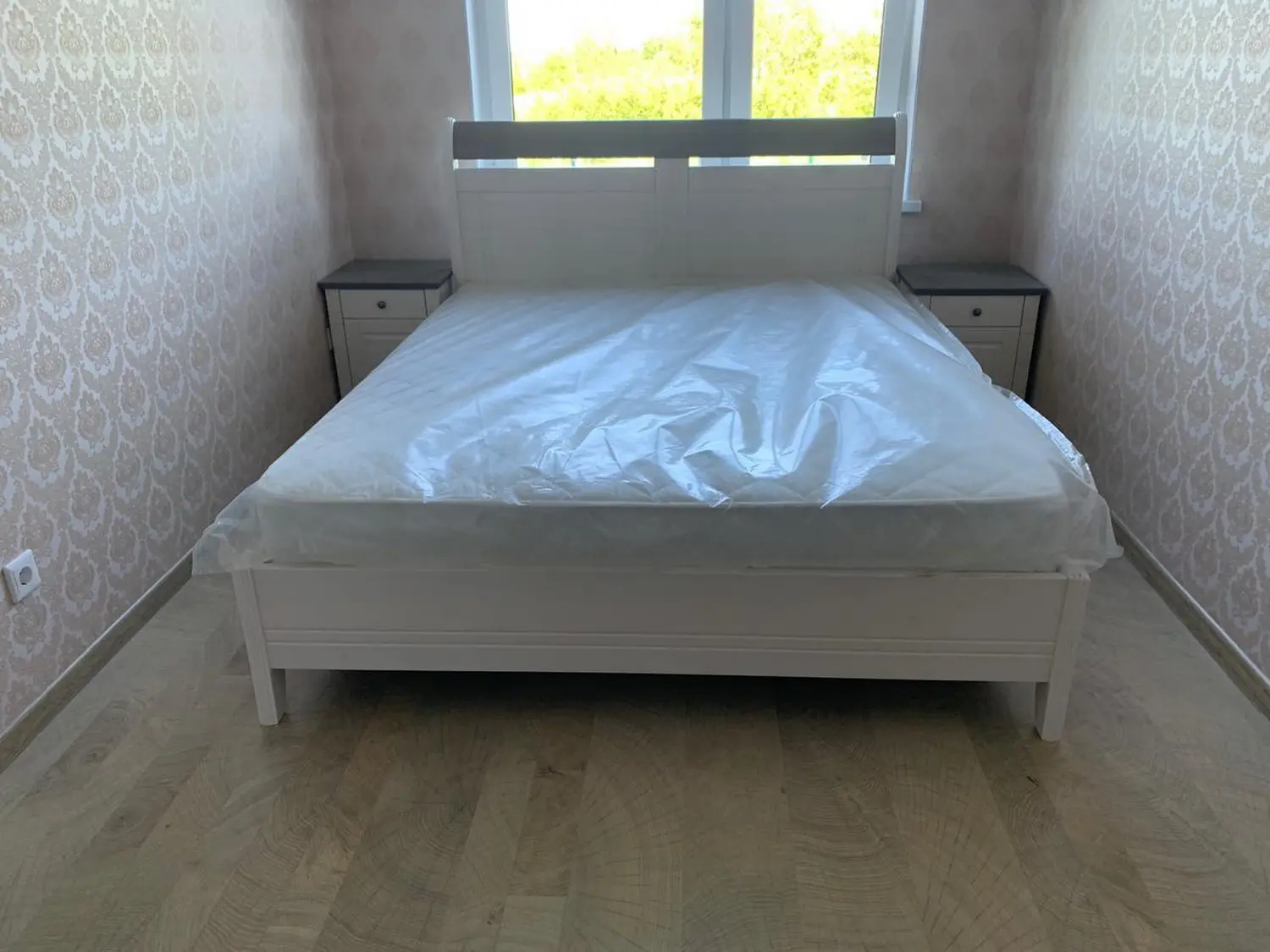 Спальное место под матрац 140*200 см. Спинка кровати в ногах низкая, что позволяет присаживаться на кровать с трех сторон. И таким образом визуально облегчает внешний вид кровати, создавая ощущение легкости и простора.