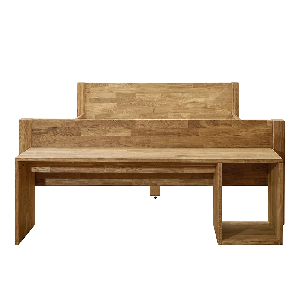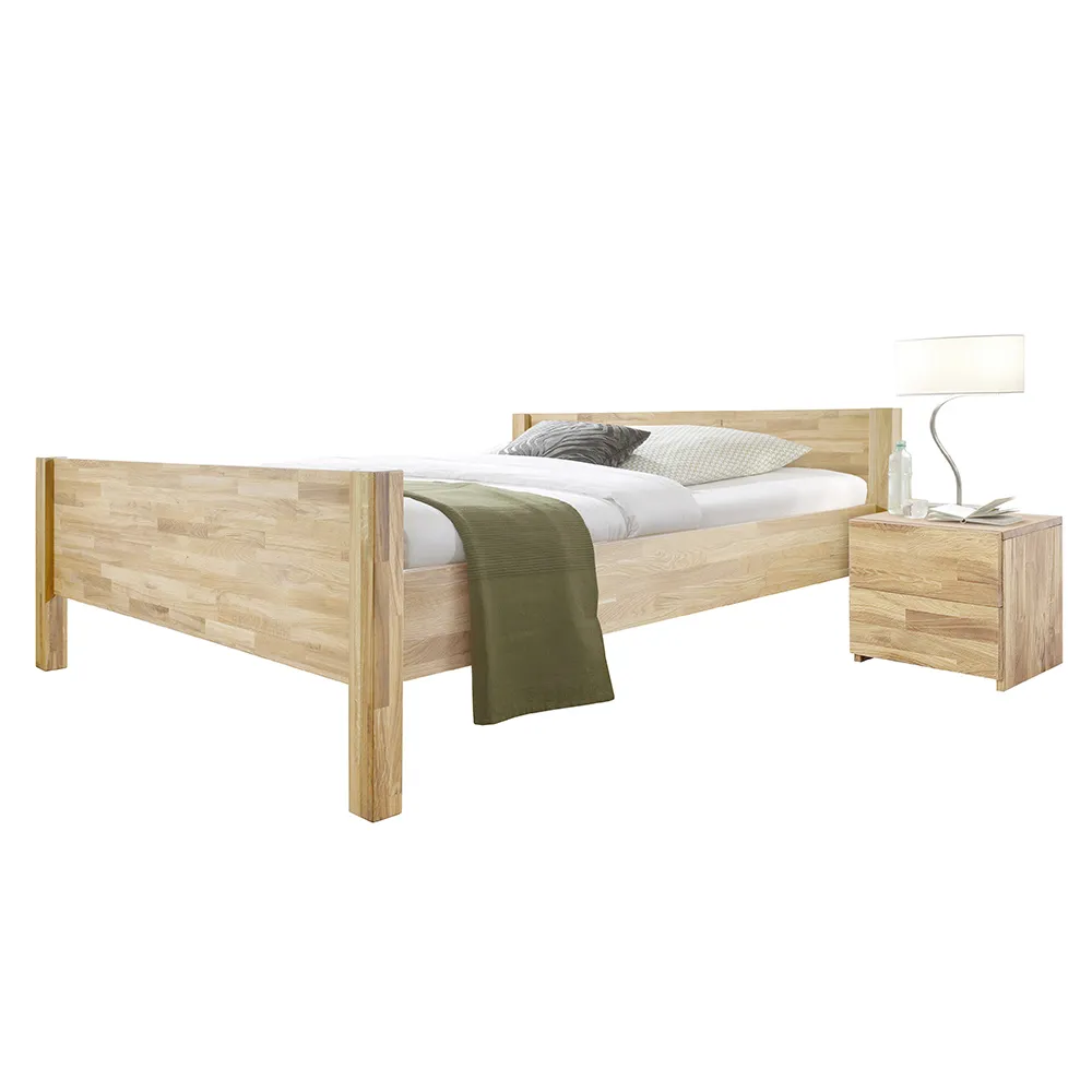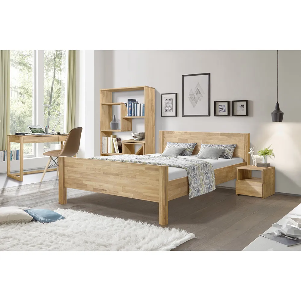 Двуспальная кровать «Ханс» — это идеальное сочетание стиля, комфорта и надёжности. Каркас кровати изготовлен из натурального дерева – массива дуба. Доступно 6 цветов отделки, на выбор: бейц-масло, дуб венге, дуб отбеленный, дуб паркетный, темная вишня, итальянский орех. Кровать имеет высокие массивные ножки, между которыми остается достаточно места для уборки.
