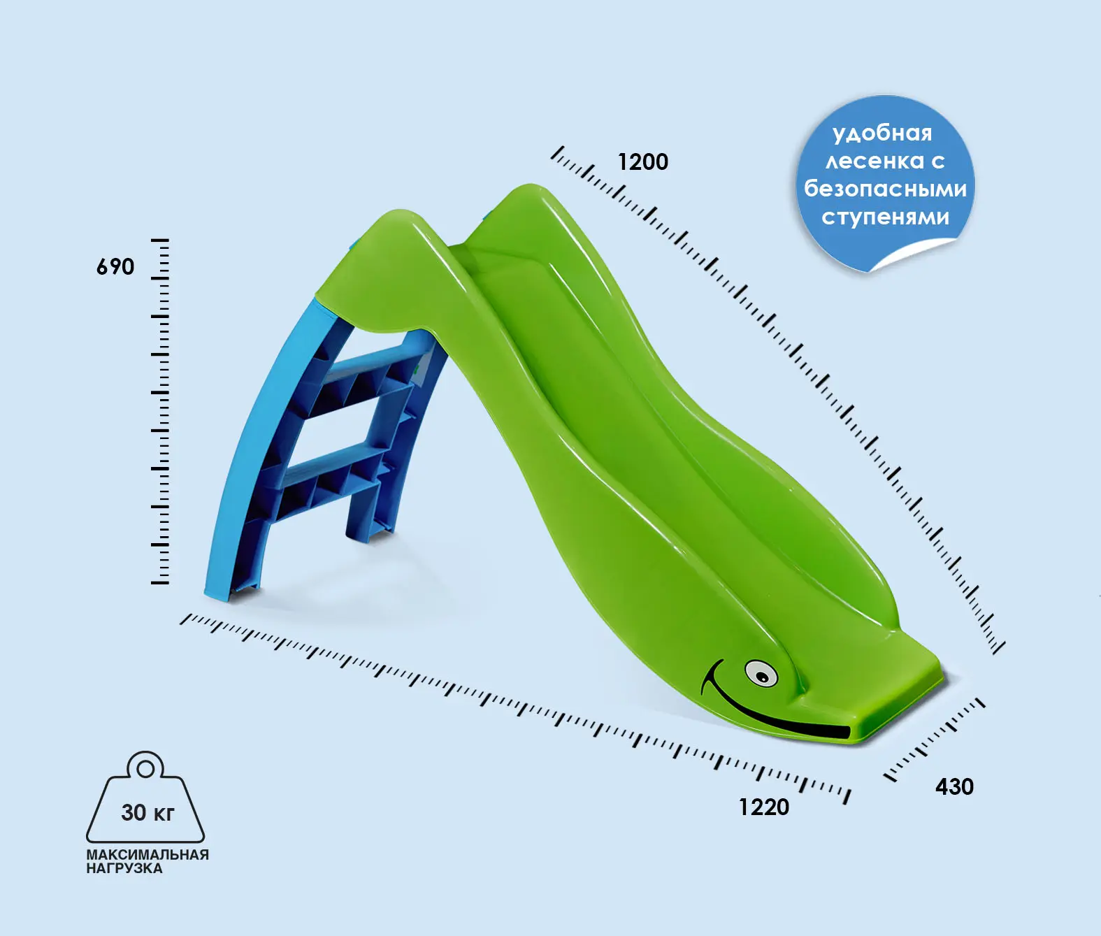 Максимальная статическая нагрузка на горку - 30 кг.