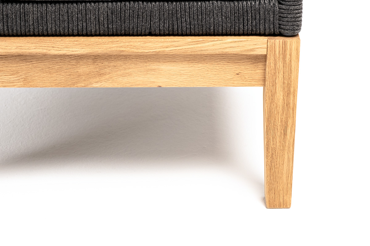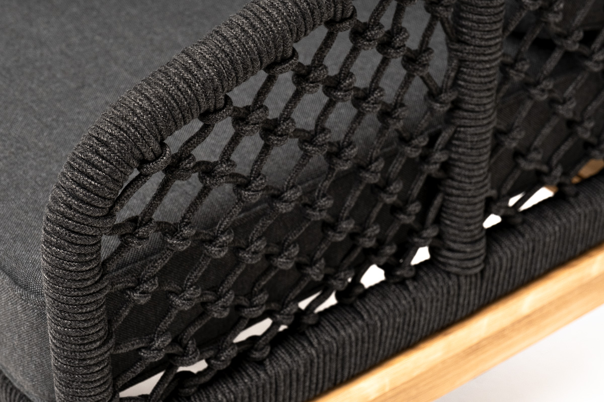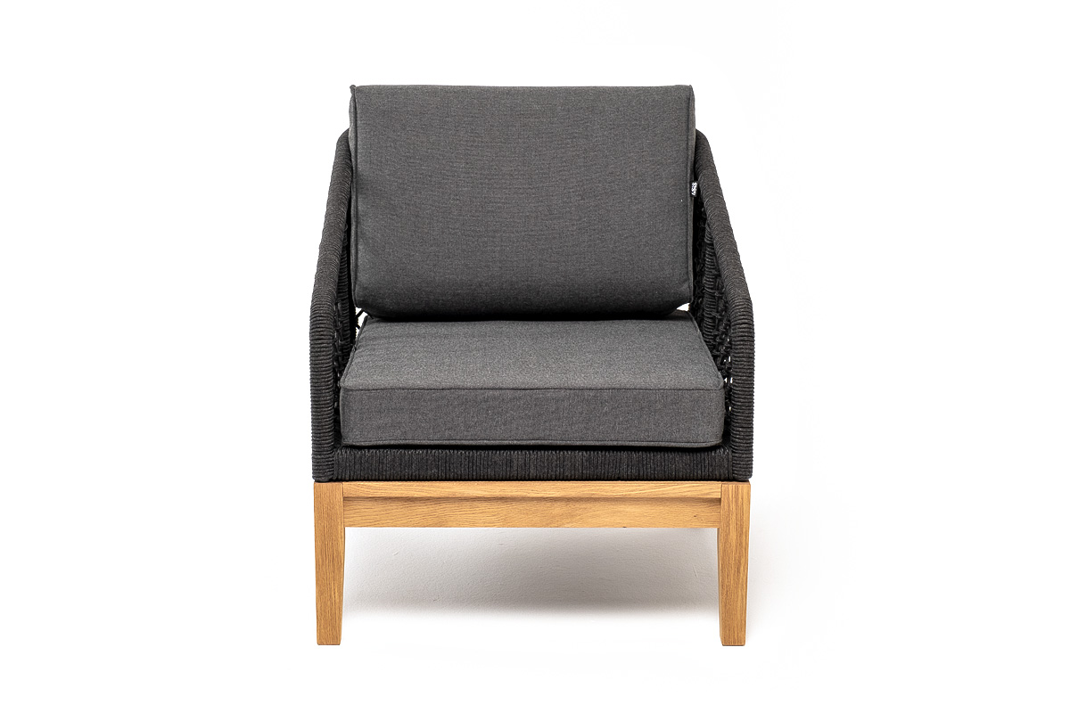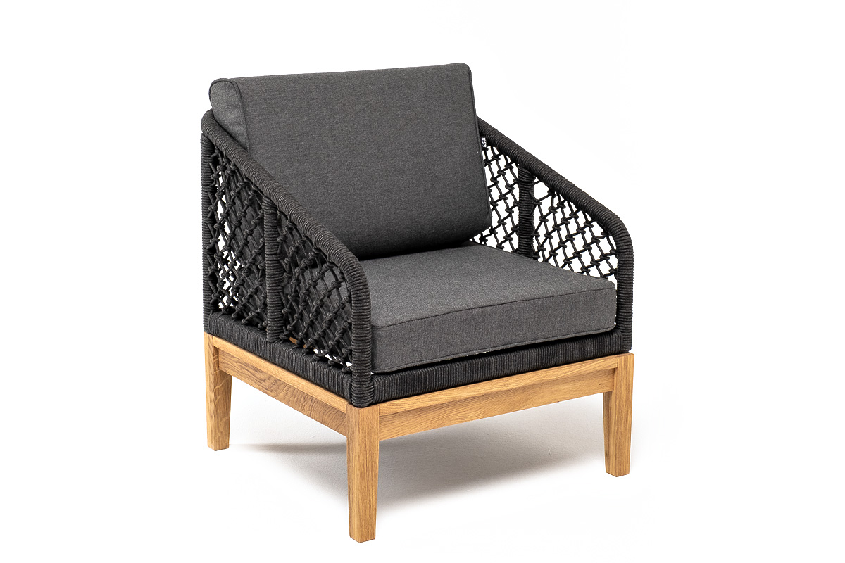 "Каннизо" кресло плетеное из роупа (узелки), основание дуб, роуп темно-серый круглый, ткань серая