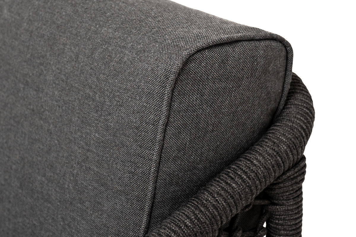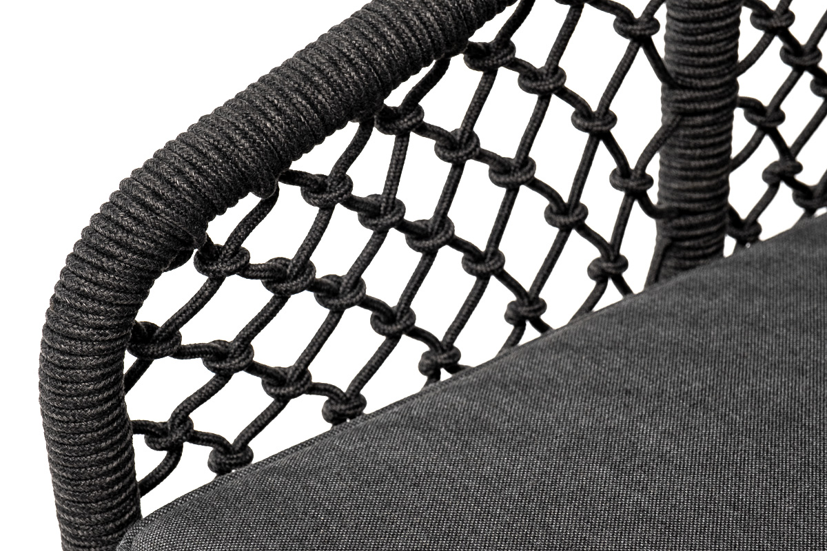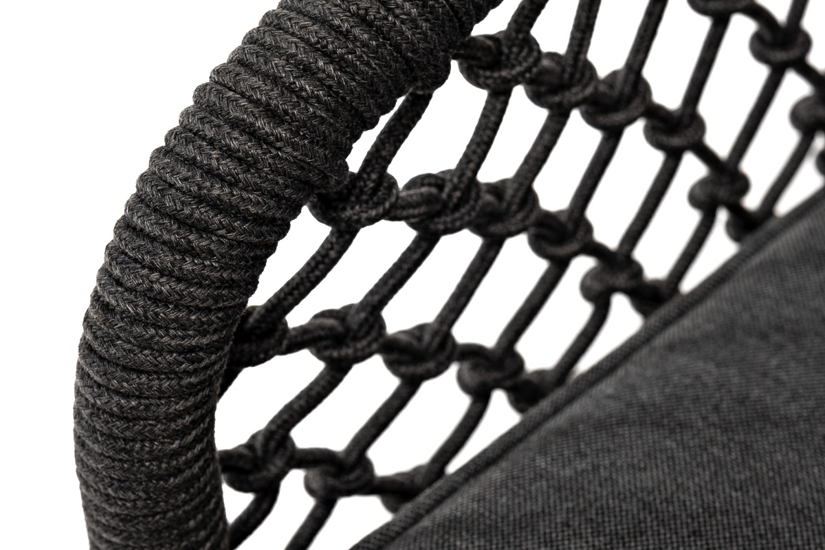 Кресло «Каннизо» с узловым плетением из роупа идеально подходит для комфортного отдыха в саду или на веранде. На боковинах - оплетка из синтетических лент, выполненных из полиэфирных волокон высокой прочности. Цвет плетения - темно-серый. Вид плетения - узелковый, создавался вручную. Основание - дуб. Приятное дополнение − подушки со съёмными чехлами серого цвета. Размеры плетеного кресла: 700×700×820 мм.