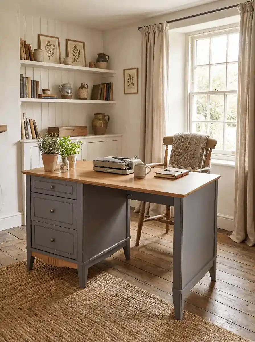 Стол письменный 3 ящика Пенни 03 серый 7046-антик 24