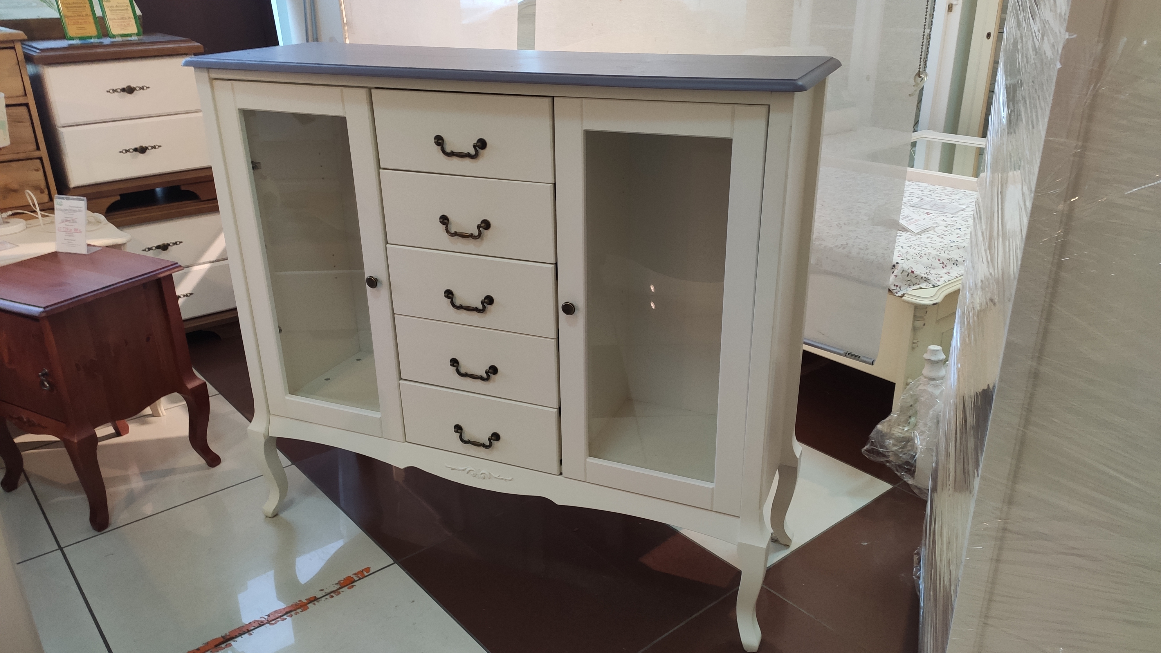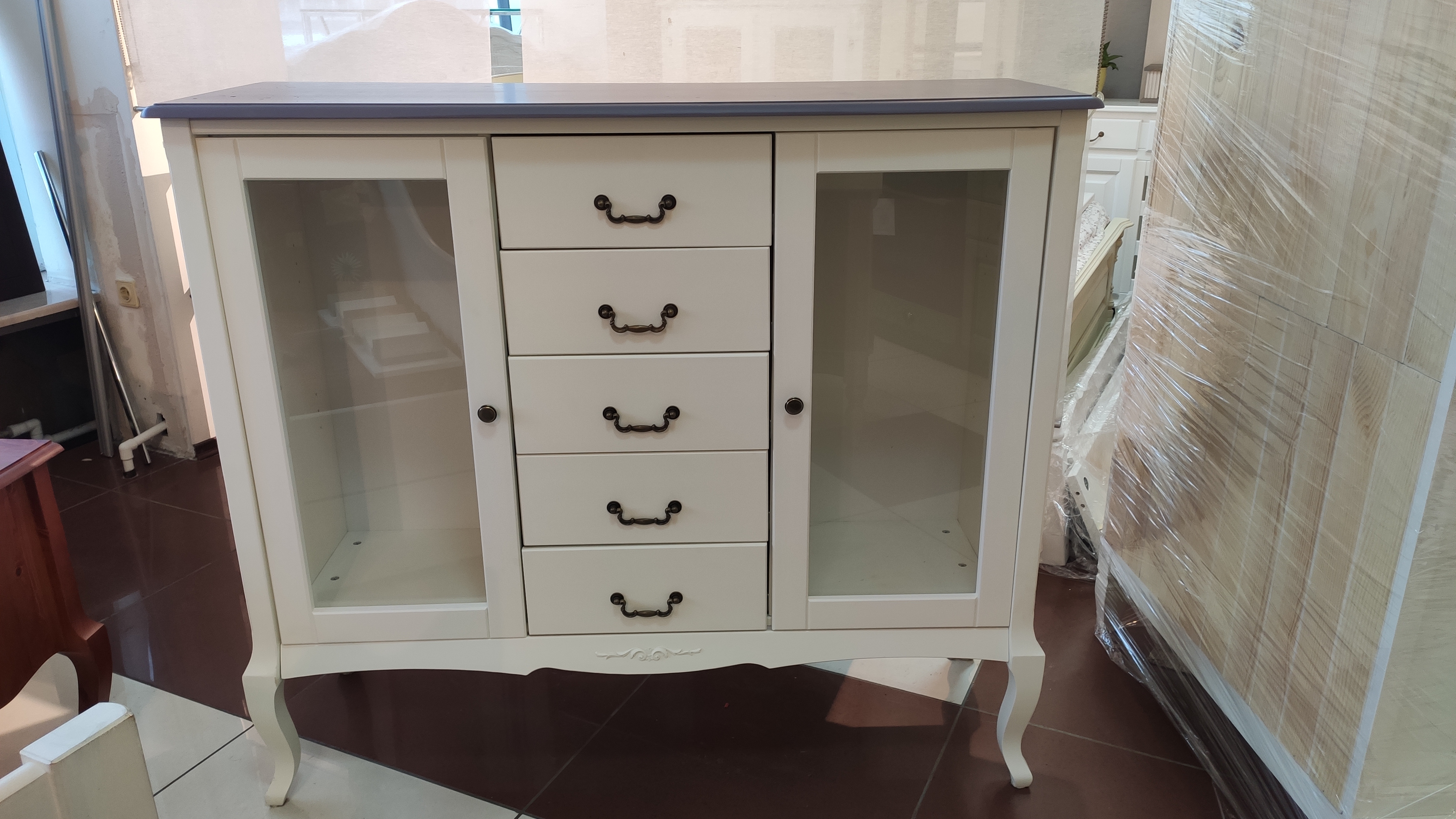 Комод имеет пять вместительных ящиков и два отделения с застекленными дверцами для хранения вещей. Отделения за дверцами разделены стеклянными полками. Высокие изогнутые ножки придают комоду элегантный вид, к тому же удобно мыть пол, не сдвигая комод. Ручки, поставляемые в комплекте изделия, могут отличаться от изображённых на фото. При оформлении заказа уточните, какие ручки будут вложены в ваш комплект.