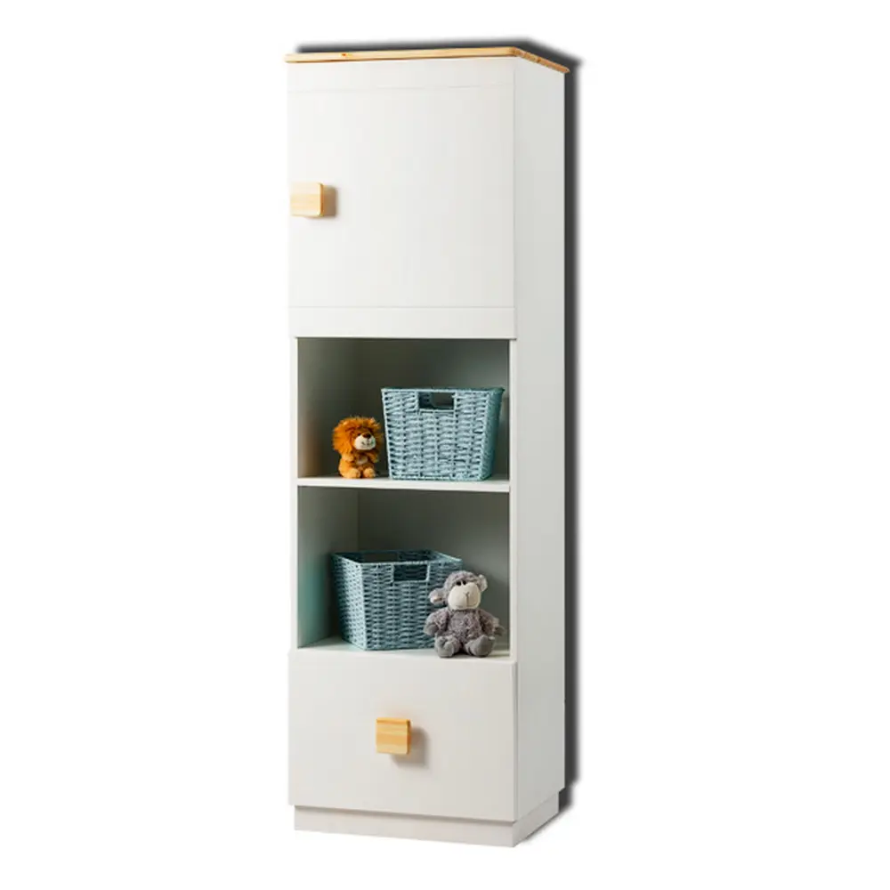 Задняя стенка и дно ящиков выполнены из ДВП белого цвета, что придаёт стеллажу завершённый вид.