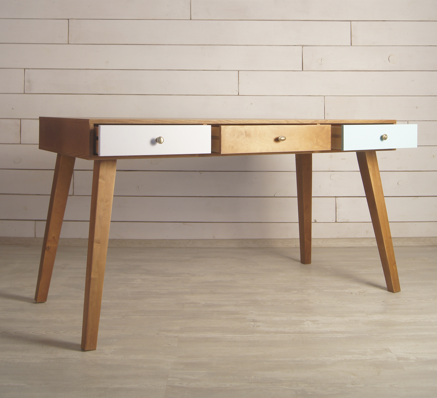 Рабочий стол "Aquarelle Birch", изготавливается из массива березы. Ящики и некоторые вкладки из березовой фанеры. Фурнитура - латунь.