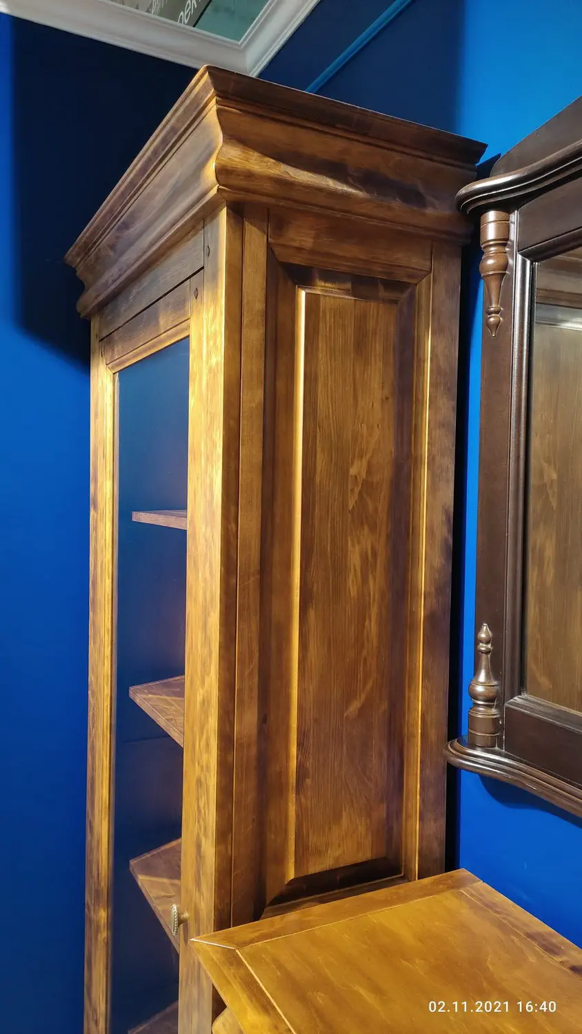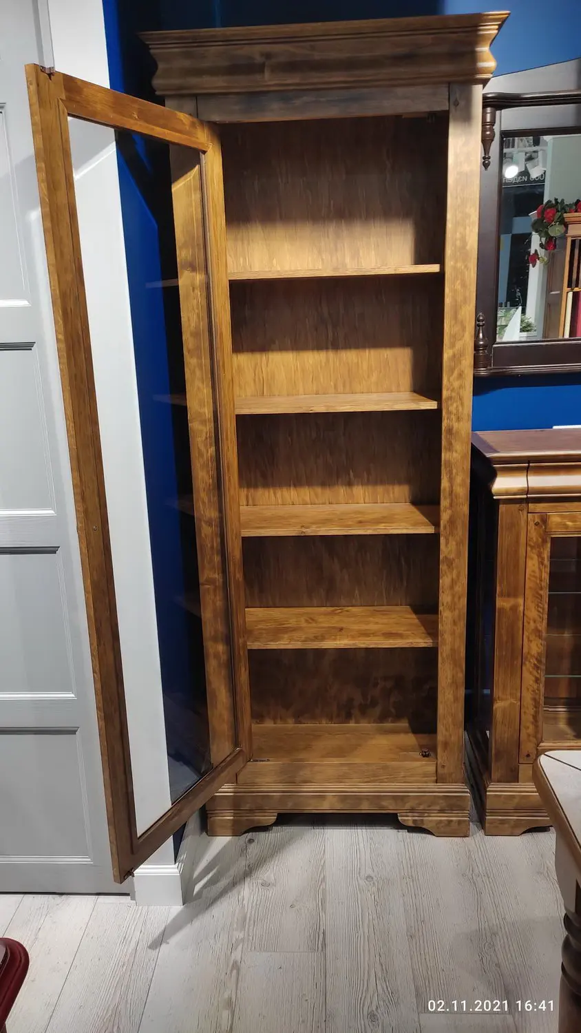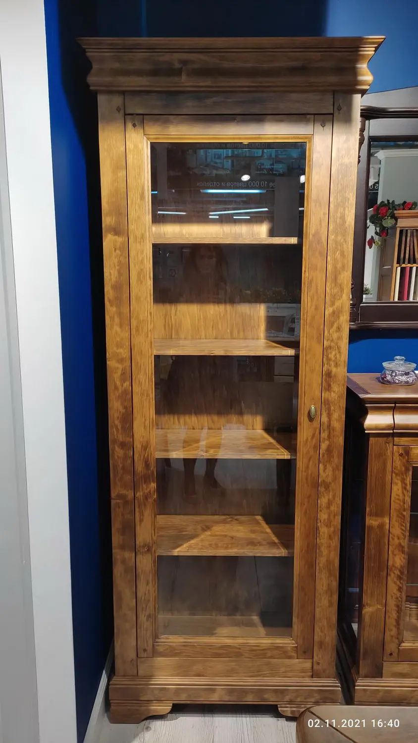 У витрины остекленная дверца, за которой расположено отделение с деревянными полками. На дверцу устанавливается металлическая ручка или замок с ключом, по выбору. Размеры шкафа (ШхГлхВ) 792х380х1700 мм, вес 47 кг. Поставляется в собранном виде, гарантия на изделие – 1 год. Обратите внимание, что шкаф, как и вся коллекция «Луи Филипп», делается под заказ, срок изготовления уточняйте у наших продавцов в салонах или по телефону на сайте.