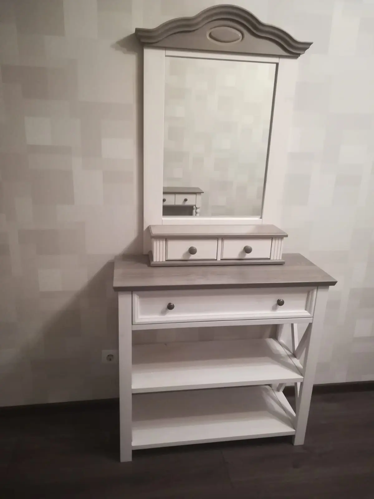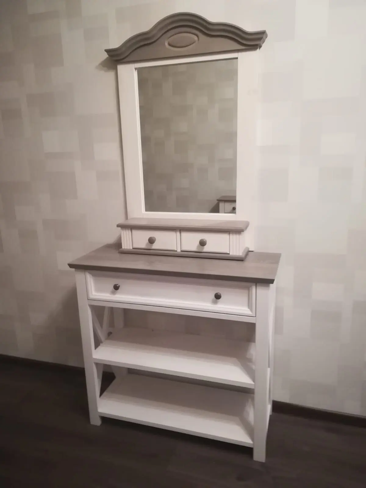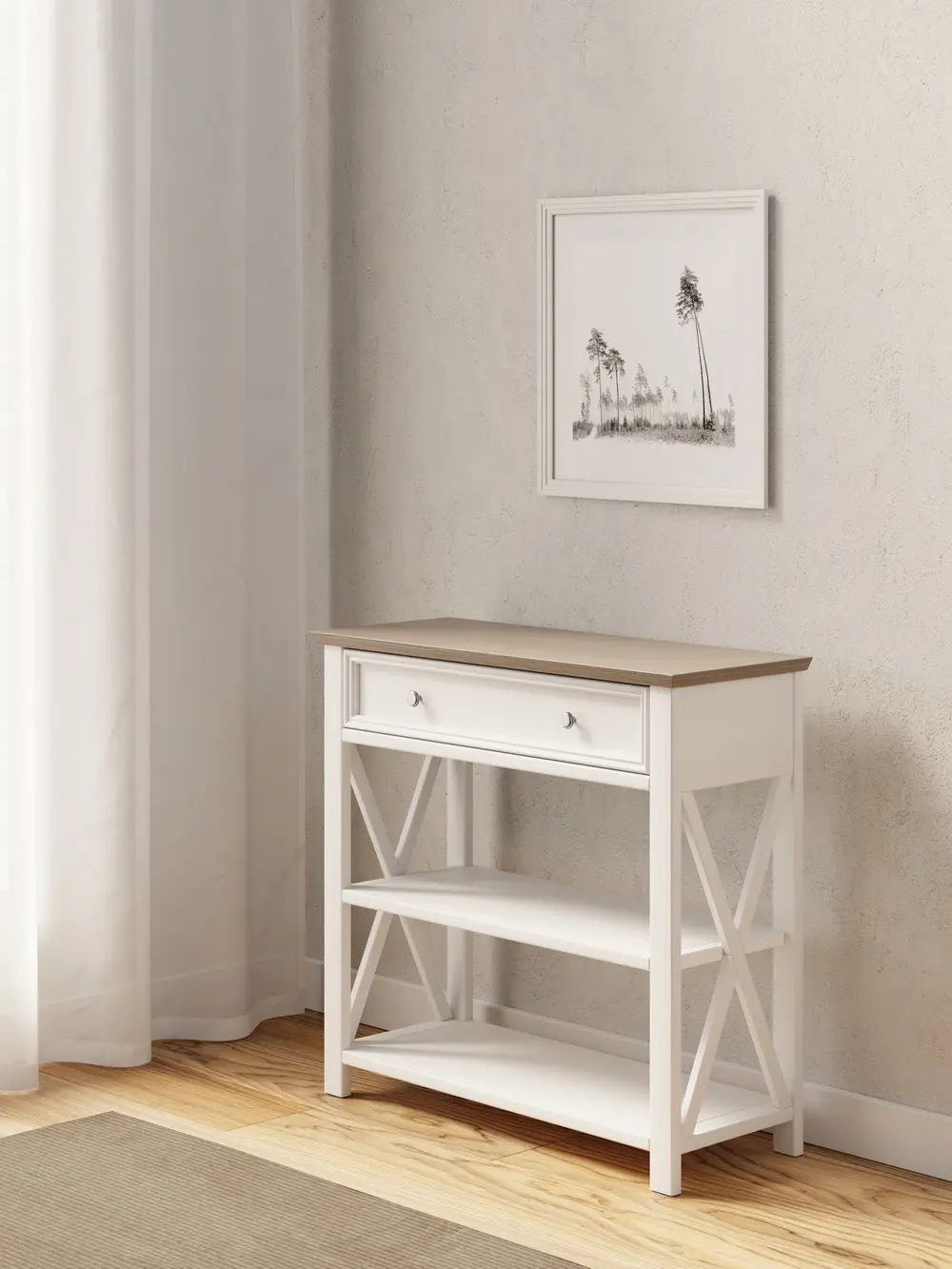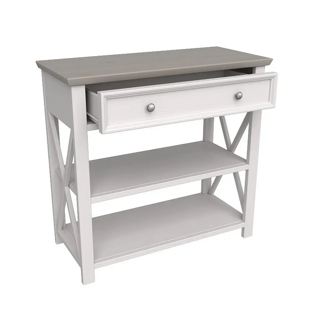Консоль массив сосны с ящиком белая Форест белый воск/серый