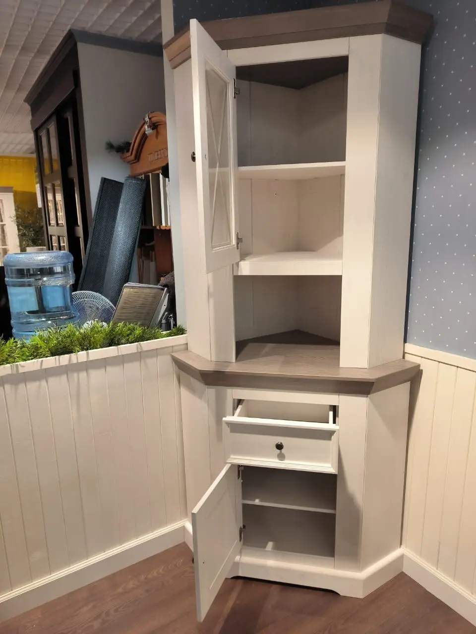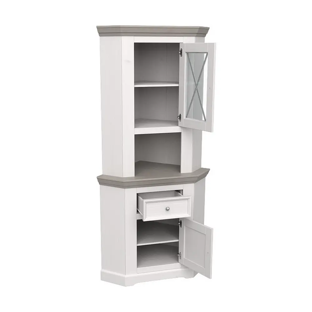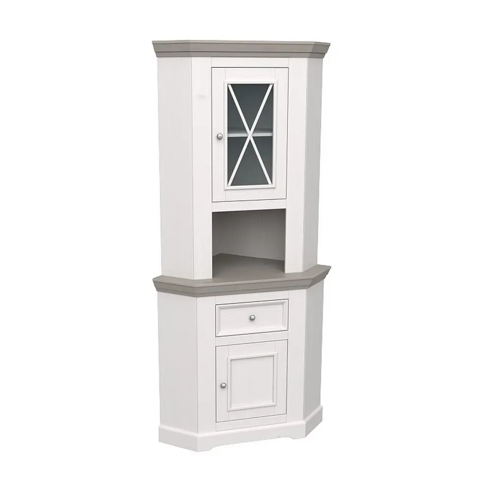 Скандинавский стиль, так популярный в последнее десятилетие, в котором выполнена коллекция Форест, можно охарактеризовать лаконичными и точными словами — «суровая красота». Отличительной чертой коллекции являются надежность, практичность, естественность, простота, удобство и функциональность. И самое главное — ЭКОЛОГИЧНОСТЬ! При производстве коллекции используется только высококачественная древесина сосны и экологически чистые отделочные материалы ведущего производителя красок в Швеции, компании Beckers. Которая известна так же Российским потребителям. Компактный, но при этом очень вместительный угловой комод Форест имеет одну дверь и один ящик на роликовых направляющих от крупнейшей немецкой компании Hafele. За дверкой находится 1 полка. Комод ставиться в угол и занимает совсем мало места, размер по углу 720*720 мм. Комод стоит на массивном, надежном цоколь, покрыт матовым лаком, который имеет знак эко-качества «Скандинавский лебедь» и соответствует требованиям Европейского стандарта EN 71-3. Комод поставляется в цвете – «белый воск/серый (антрацит)». Комбинация цвета подразумевает отделку столешницы комода в цвет «антрацит» (серый), остальная часть изделия в цвете «белый воск». Структура дерева слегка просвечивает. Поставляется в разобранном виде в двух упаковках. Кроме того, комод укомплектован всей необходимой фурнитурой для дальнейшего полноценного использования. Так же в комплект вложена инструкция по сборке изделия.