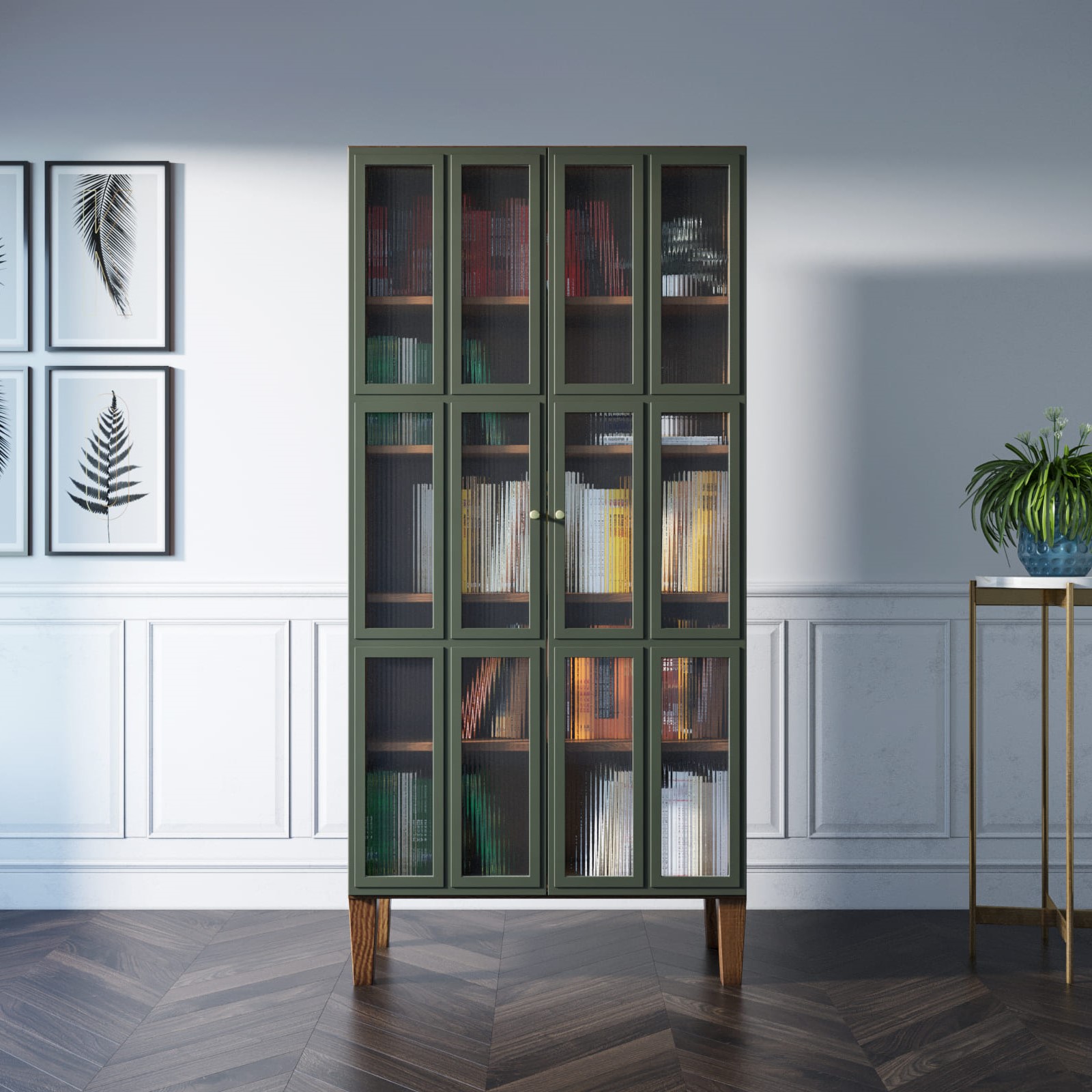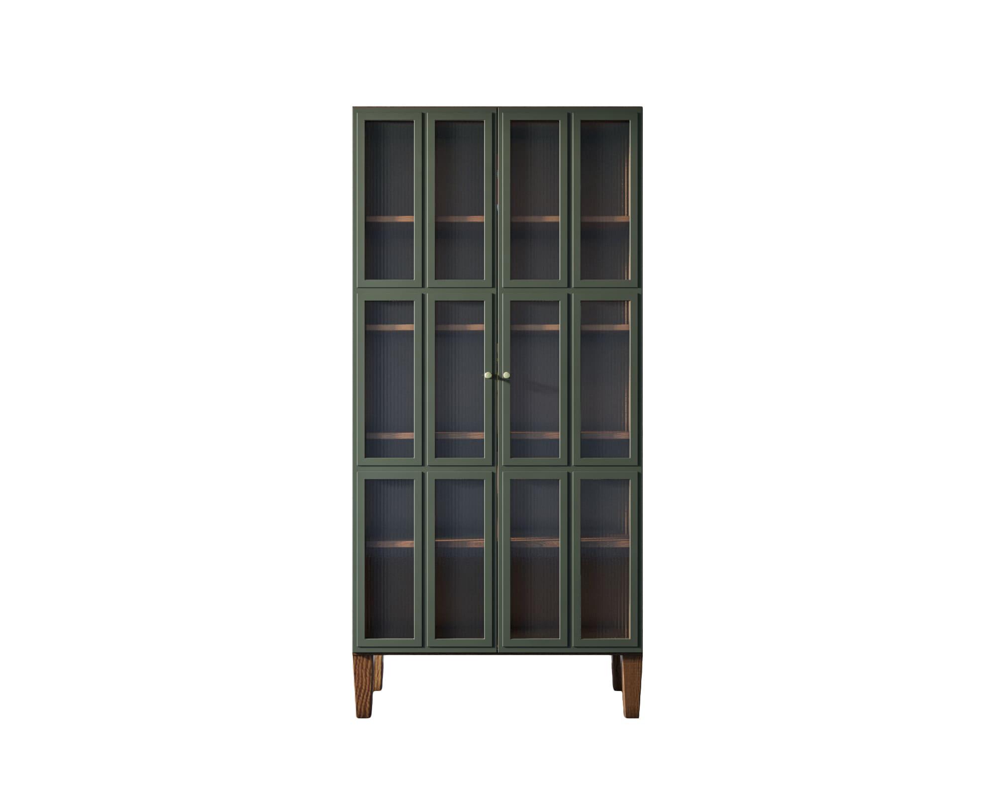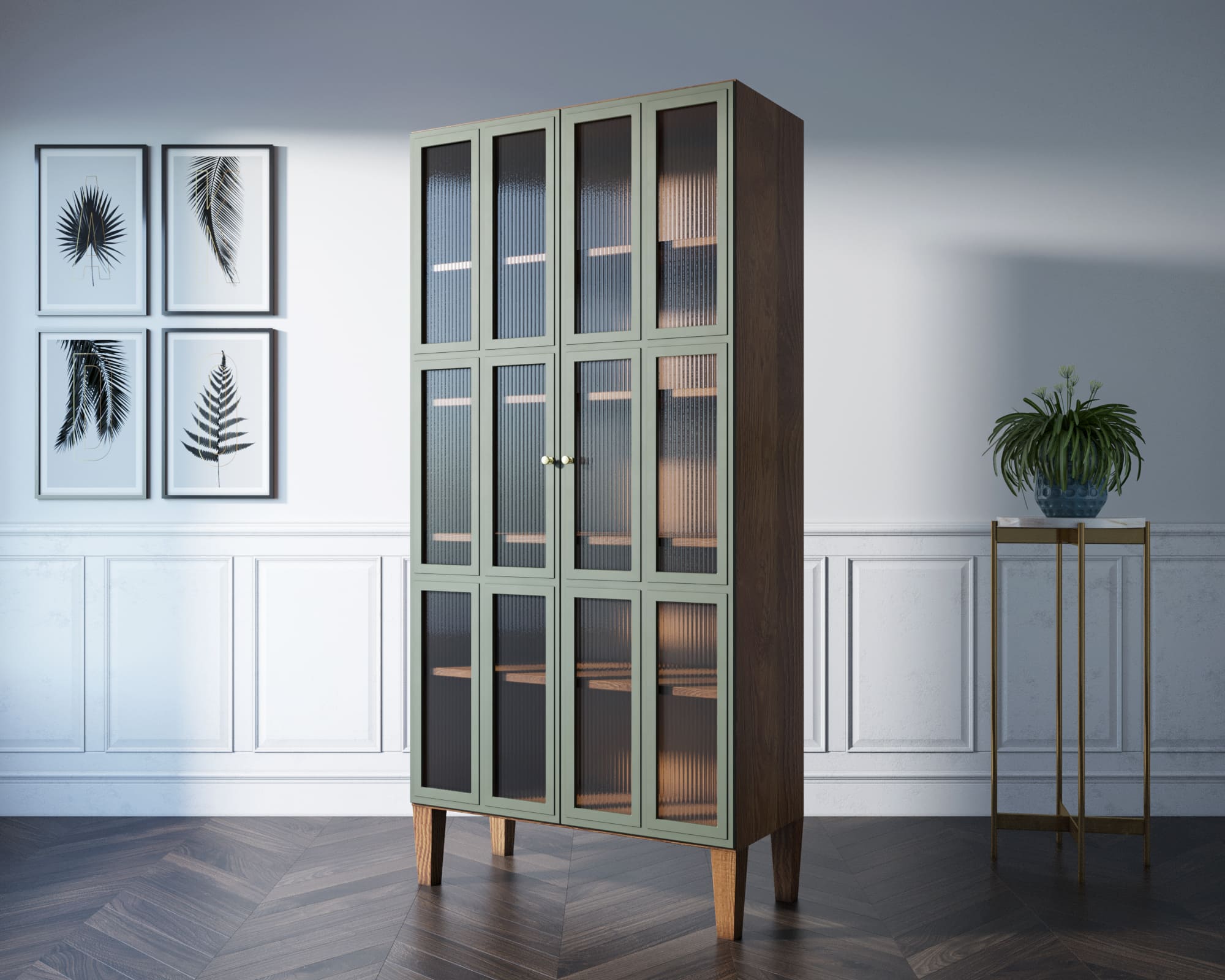 Фасады имеют приятный зеленый оттенок, который стильно сочетается с рифленым стеклом.
