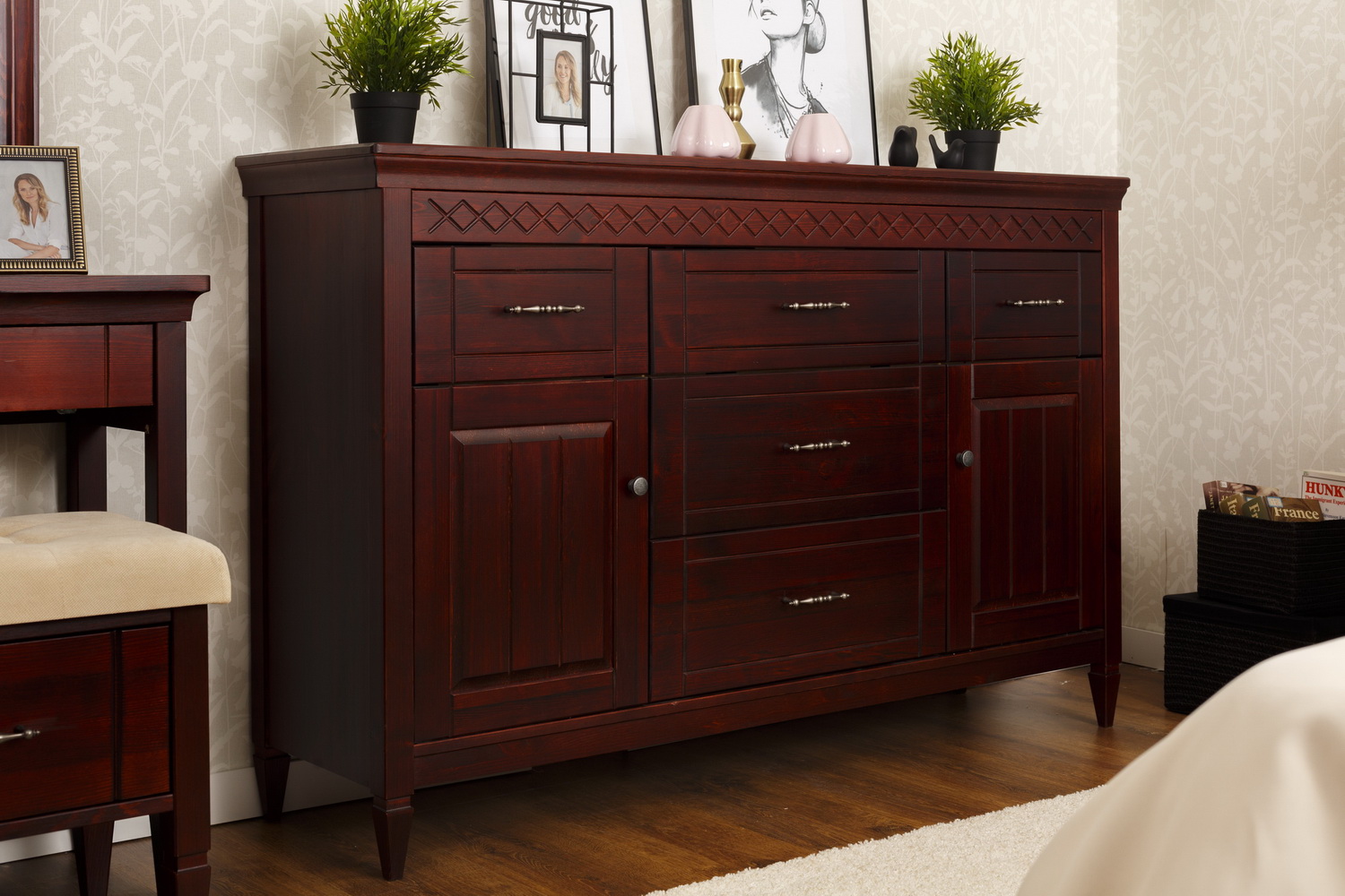Материал - сосна, задняя стенка, дно ящиков - ДВП белого цвета.