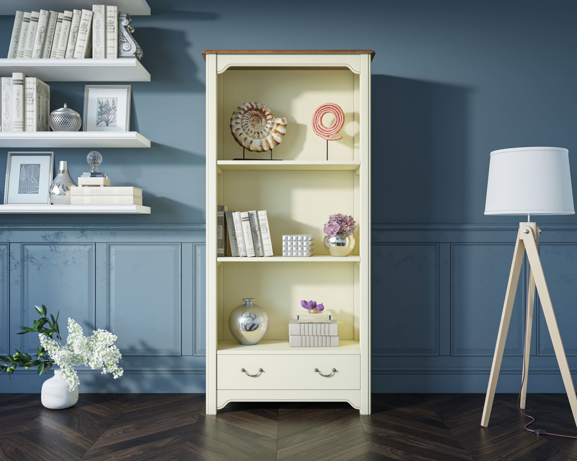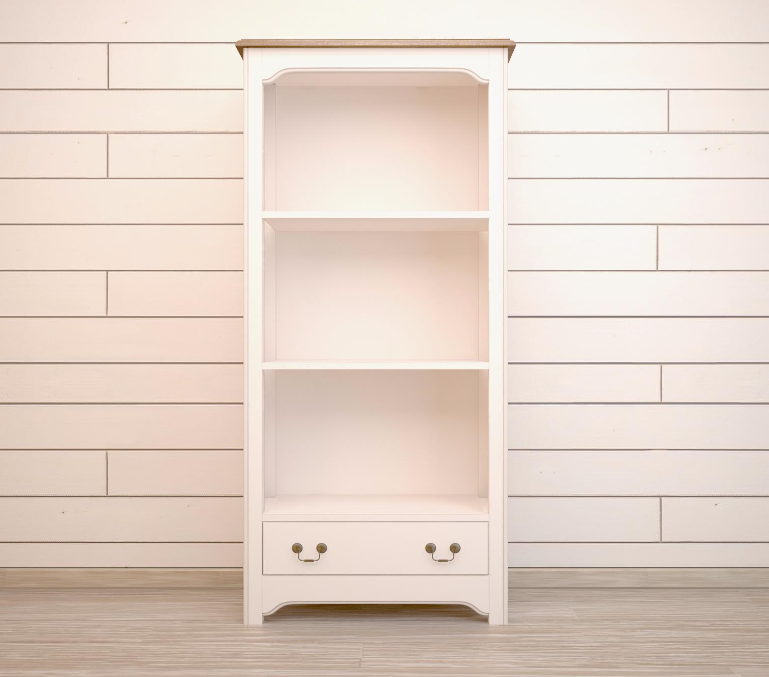 Наполнение стеллажа: две открытые полки и ниже 1 выдвижной ящик.
