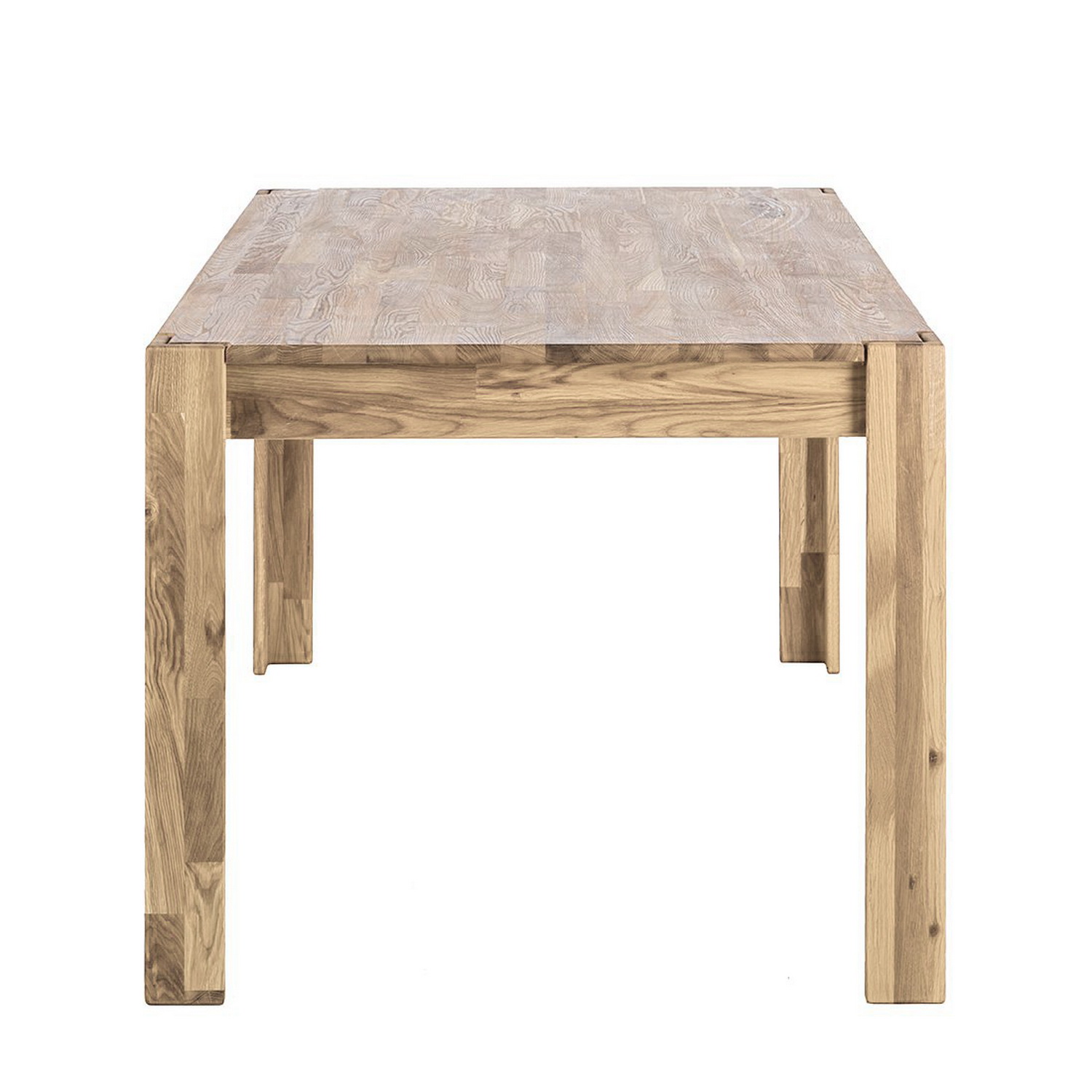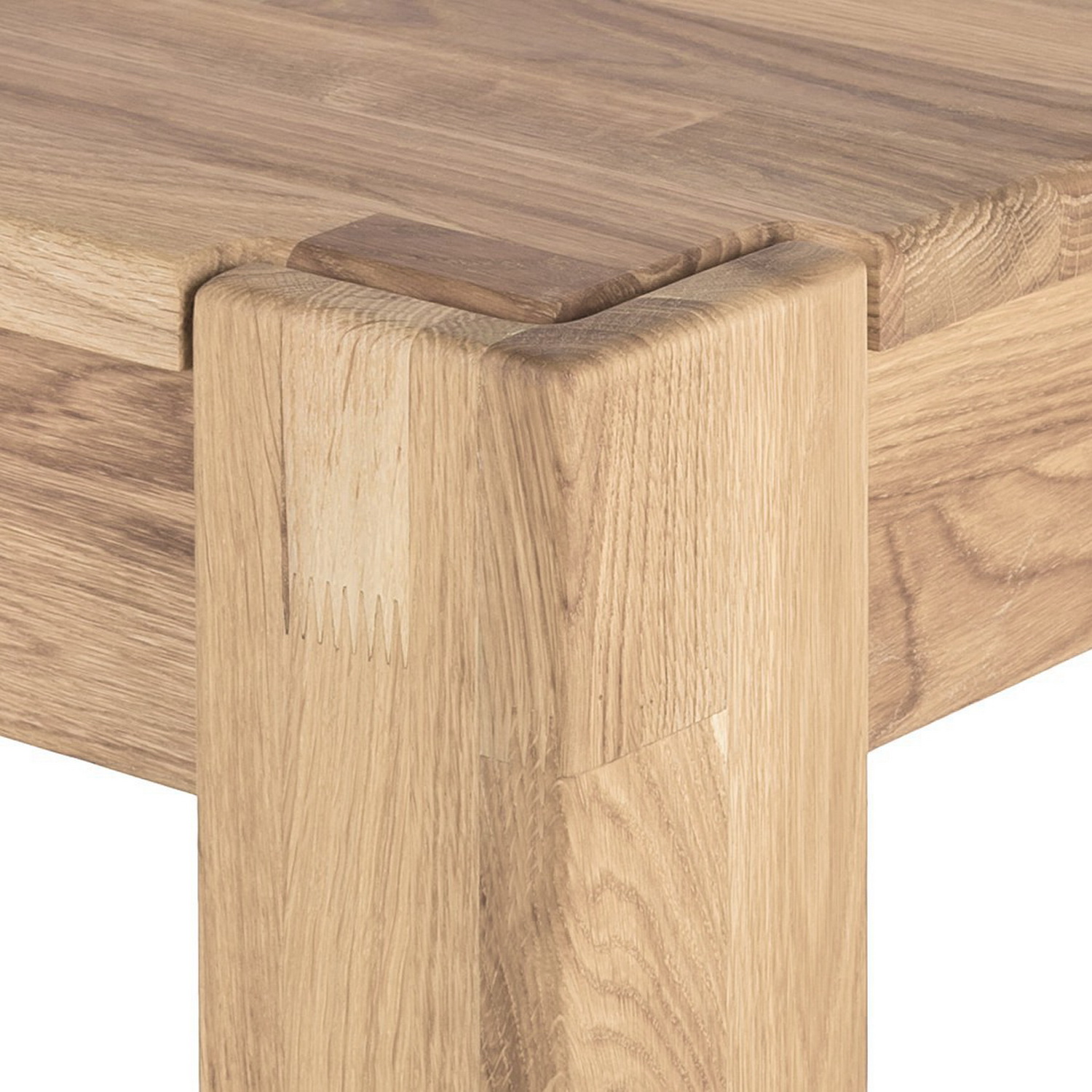 Стол изготовлен из натурального и долговечного материала – массива дуба. Доступно шесть вариантов отделки: бейц-масло, дуб отбеленный, дуб паркетный, дуб венге, тёмная вишня и итальянский орех. Вы можете выбрать тот вариант, который лучше всего подойдёт к вашему интерьеру. Столик имеет устойчивые L-образные ножки 90х90 мм. Оригинальное дизайнерское решение – верхние поверхности ножек сделаны на одном уровне со столешницей.