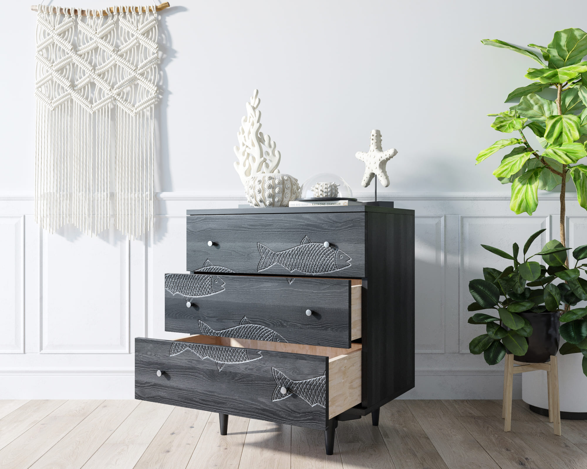 Комод "Boho" на 3 ящика с рыбами  прекрасно впишется в дизайнерские проекты,