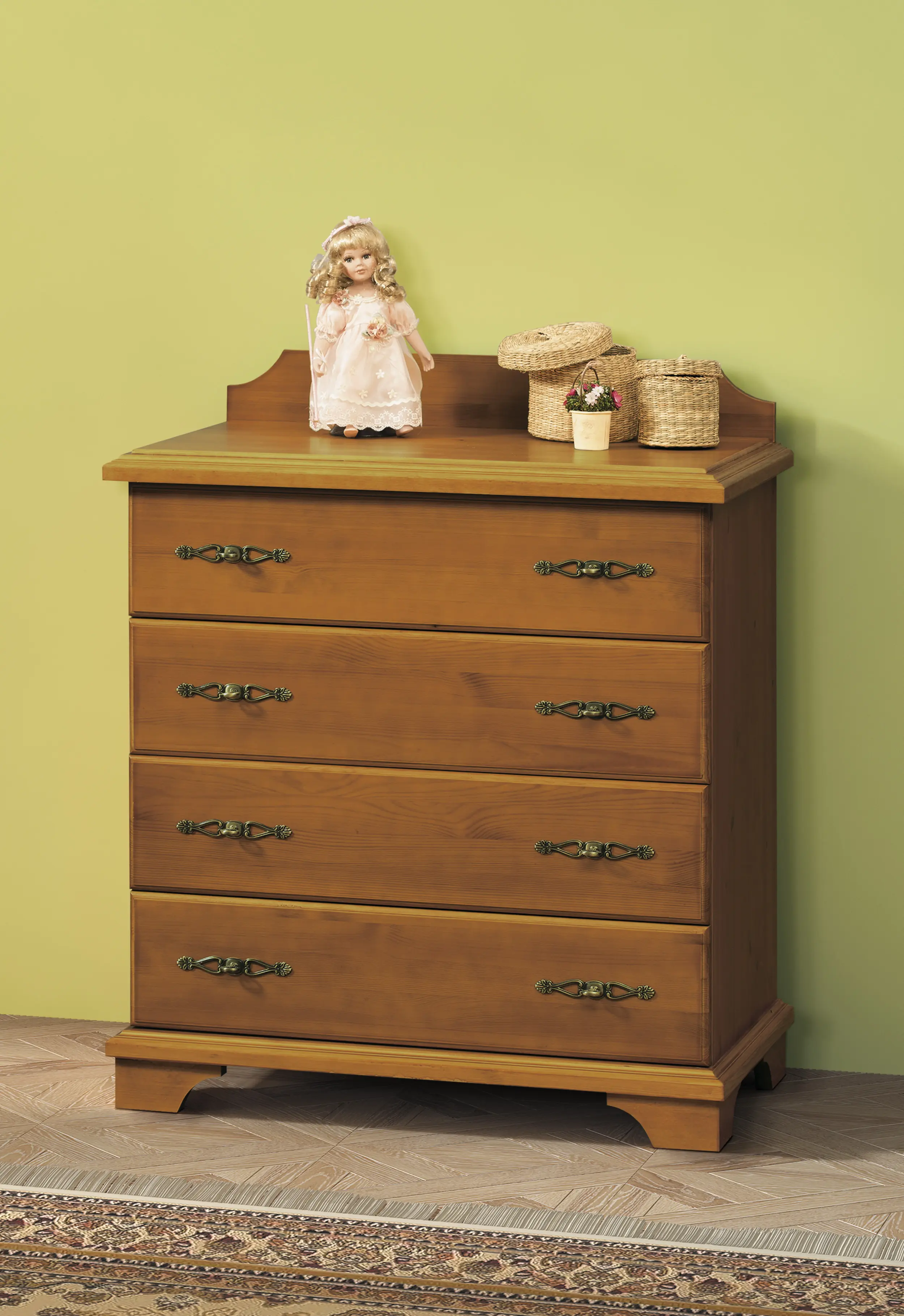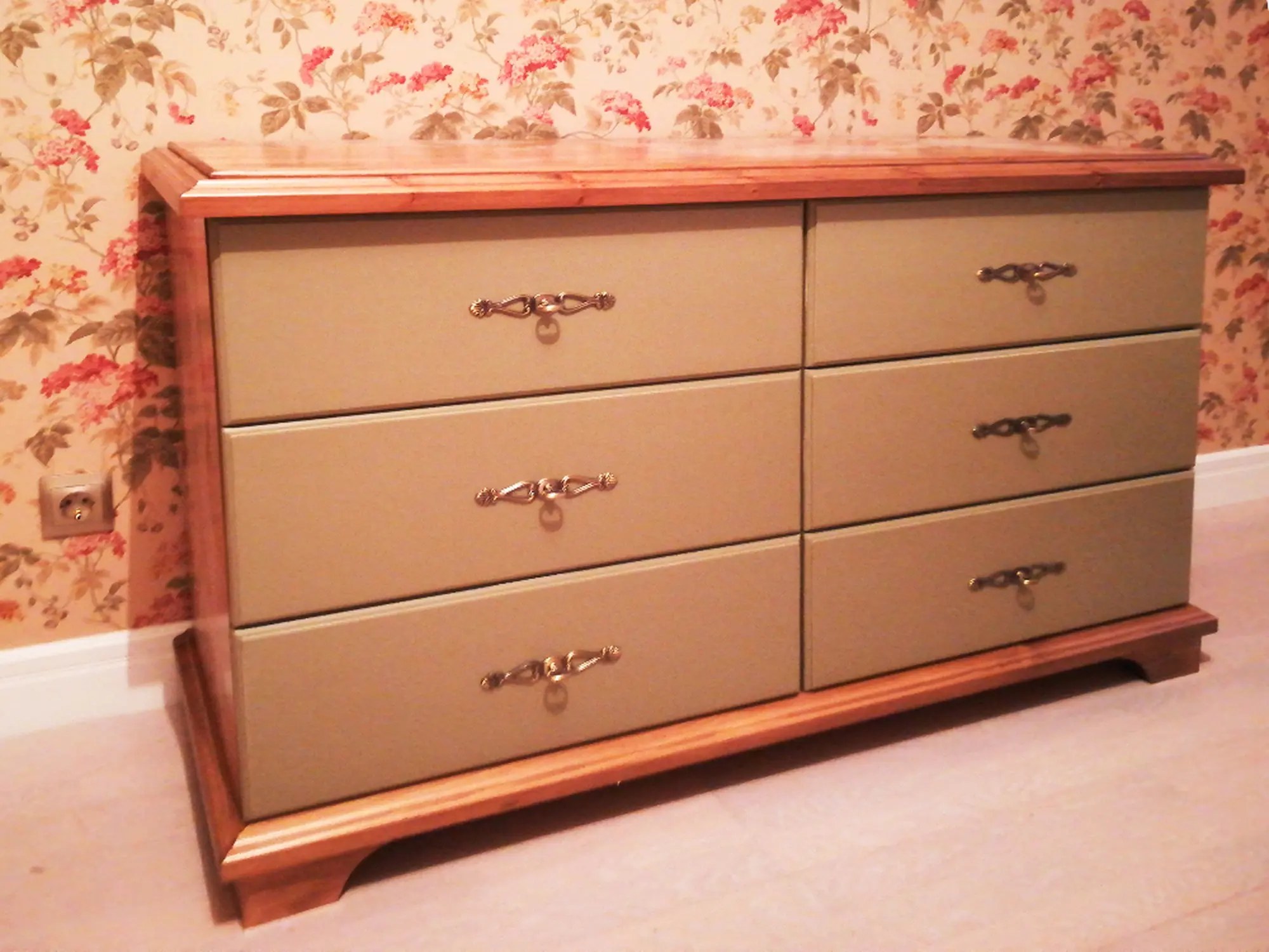 Для изготовления корпусов и фасадов используется массив сосны, задние стенки предметов и донья ящиков делаются из ДВП. Ящики устанавливаются на шариковых направляющих скрытого монтажа, полного выката. Направляющие оснащены доводчиками для мягкого бесшумного закрывания. Дверные петли также имеют доводчики.
