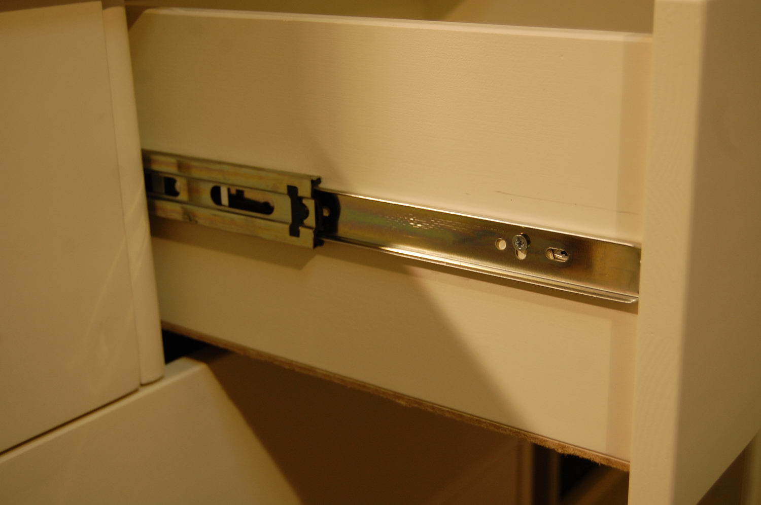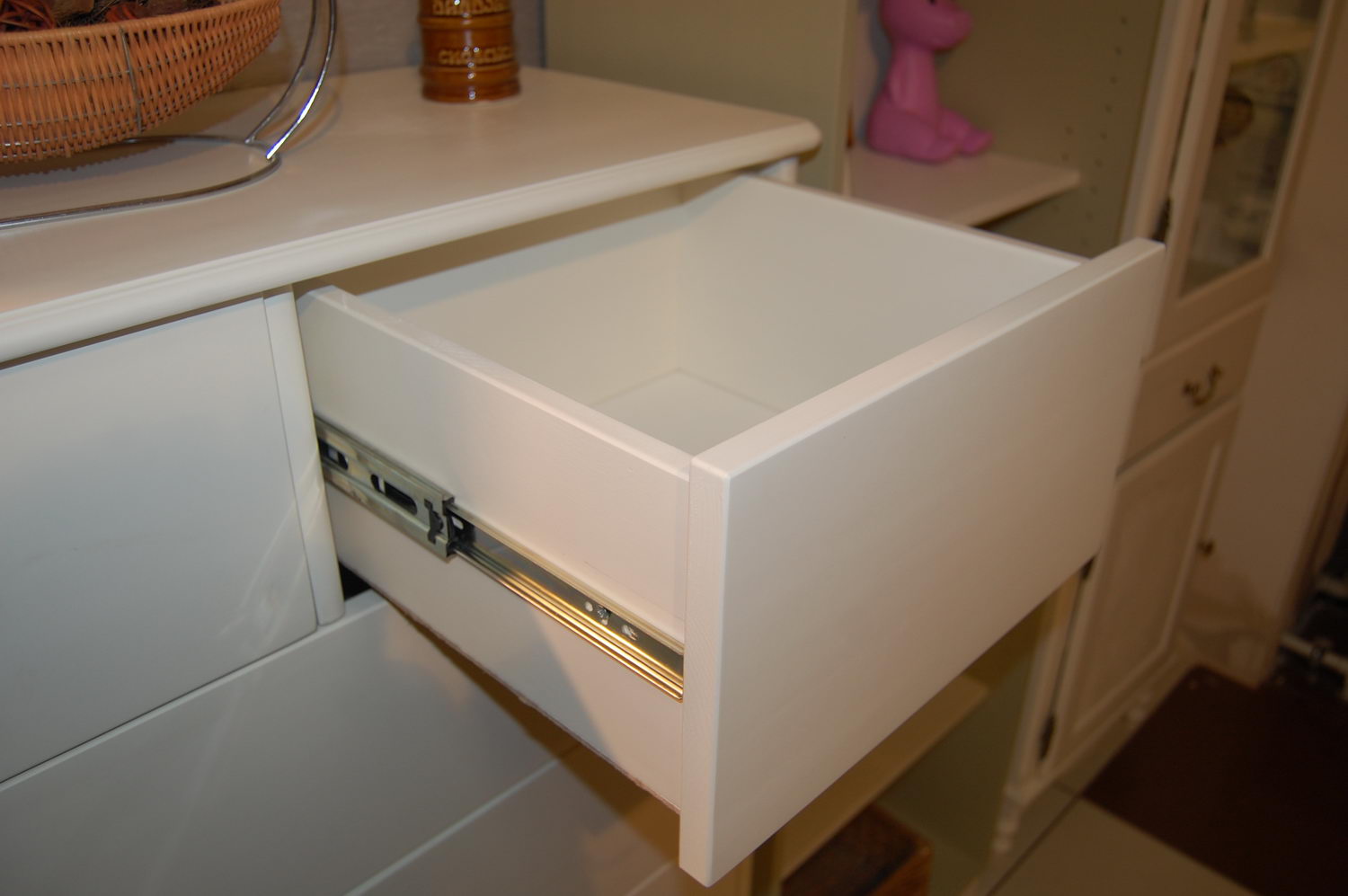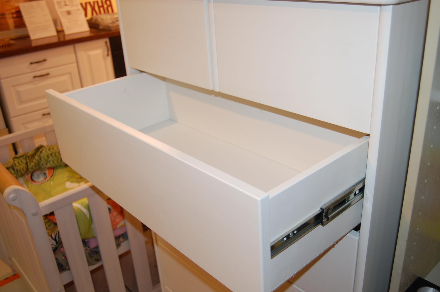 Установлены шариковые направляющие полного выдвижения, которые позволяют выдвинуть ящик полностью.