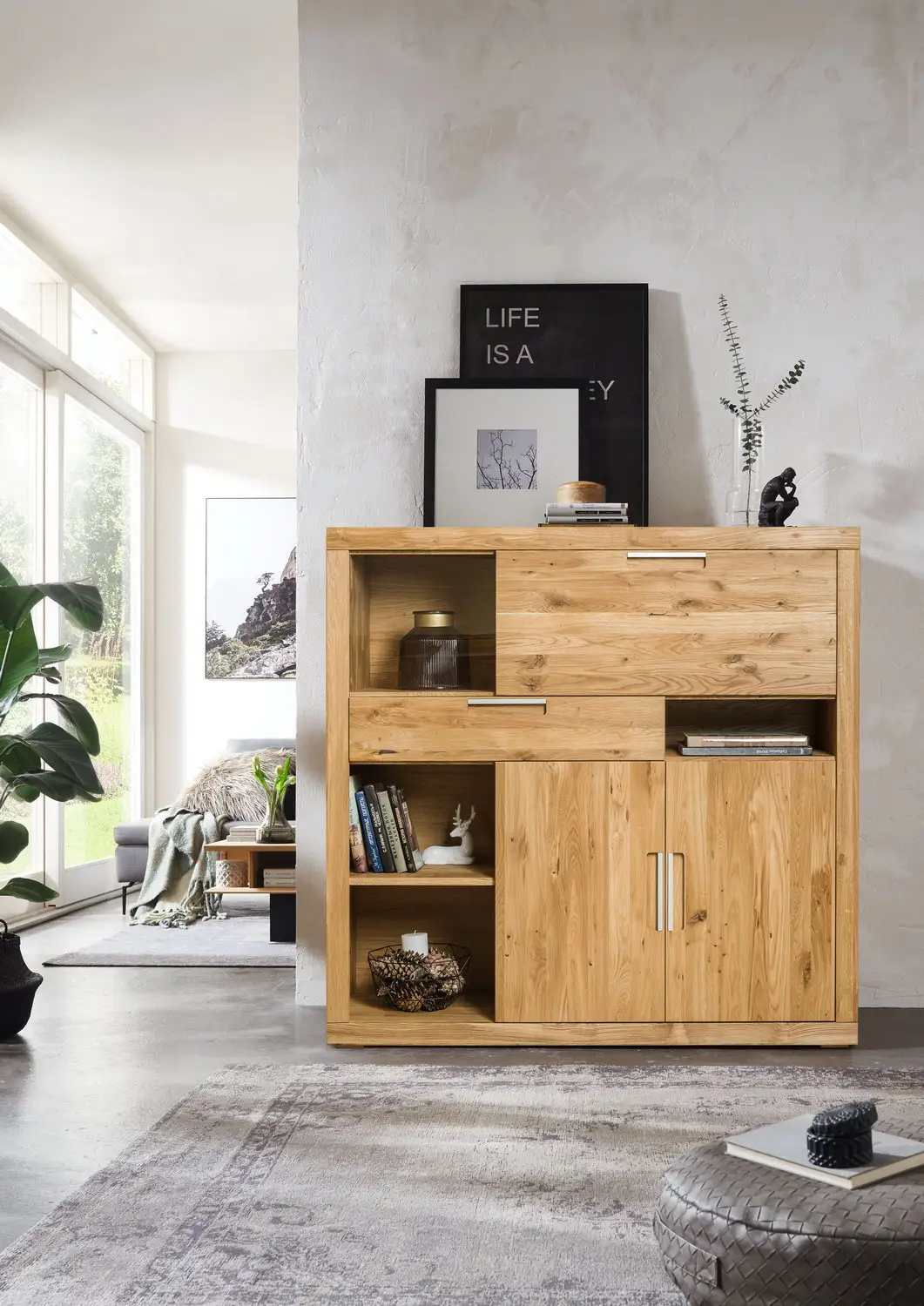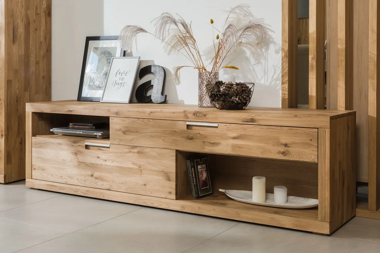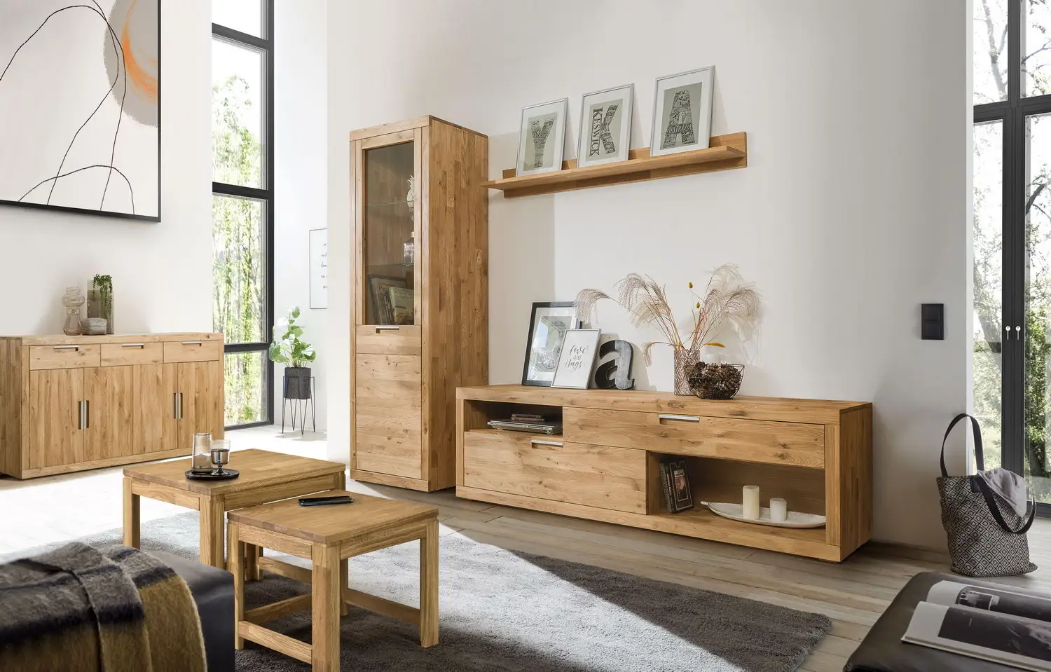 «Лерой ST» – это люксовая мебель из дуба для гостиных. Предметы отличаются простым, но стильным дизайном, без лишних деталей, и красивым природным рисунком дерева. В коллекции есть шкафы-витрины с остеклением, буфеты, комоды с дверцами и ящиками, тумбы ТВ, настенные полки.