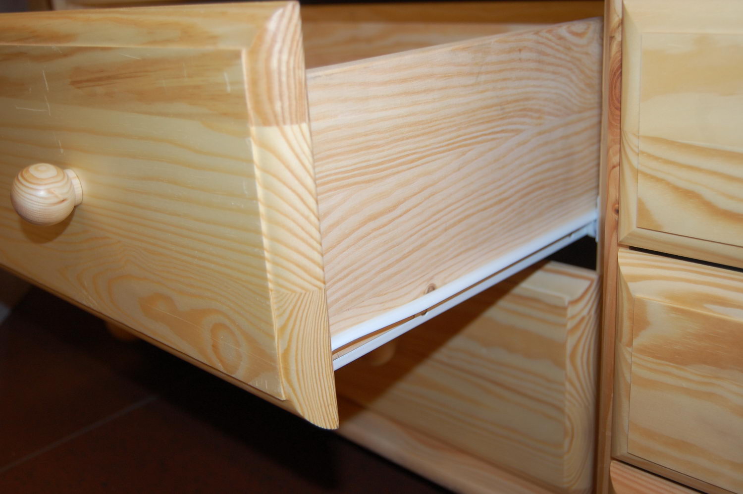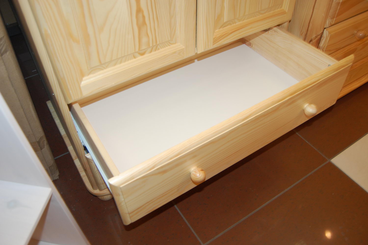 Все лицевые фасады, изготовлены из бессучкового массива путём ручной сортировки сырья. При изготовлении шкафа, кроме натурального дерева, не применяются никакие другие материалы, наподобие дсп, мдф, которые могли бы поставить под сомнение экологичность изделия. Кроме того, сосна также отличается и привлекательным внешним видом.