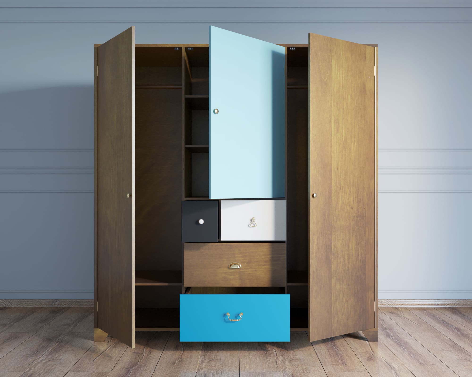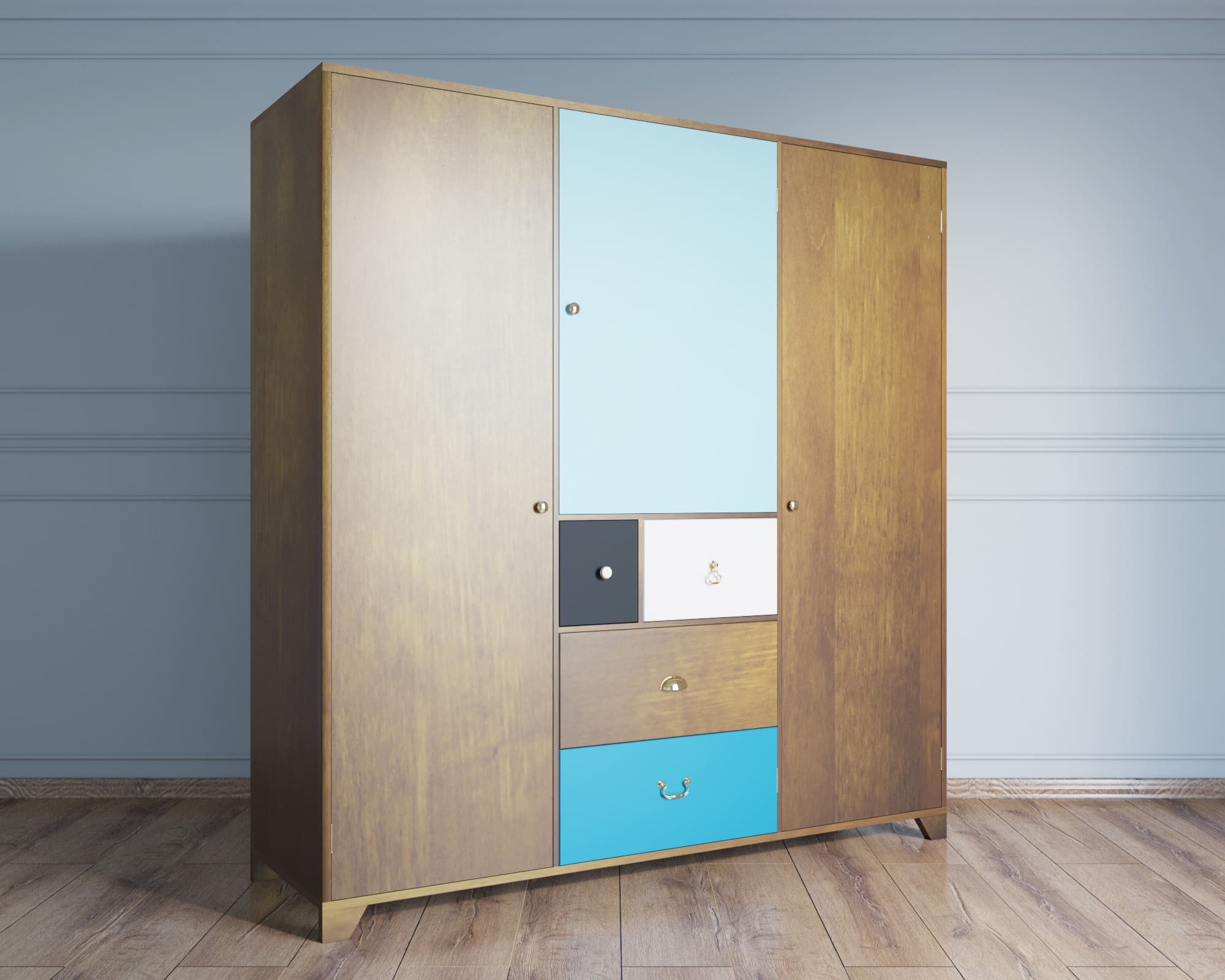 Шкаф с 4 ящиками "Aquarelle" трехстворчатый
