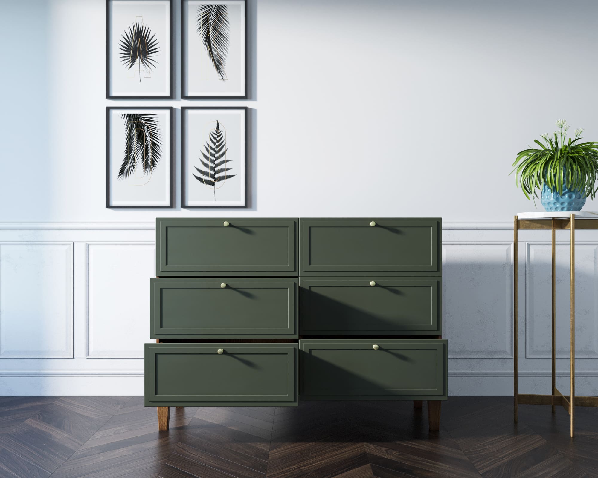 Внутреннее наполнение: 6 ящиков на направляющих с доводчиками.
