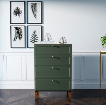 Фасады имеют приятный зеленый оттенок. Корпус комода выполнен из шпона ясеня.