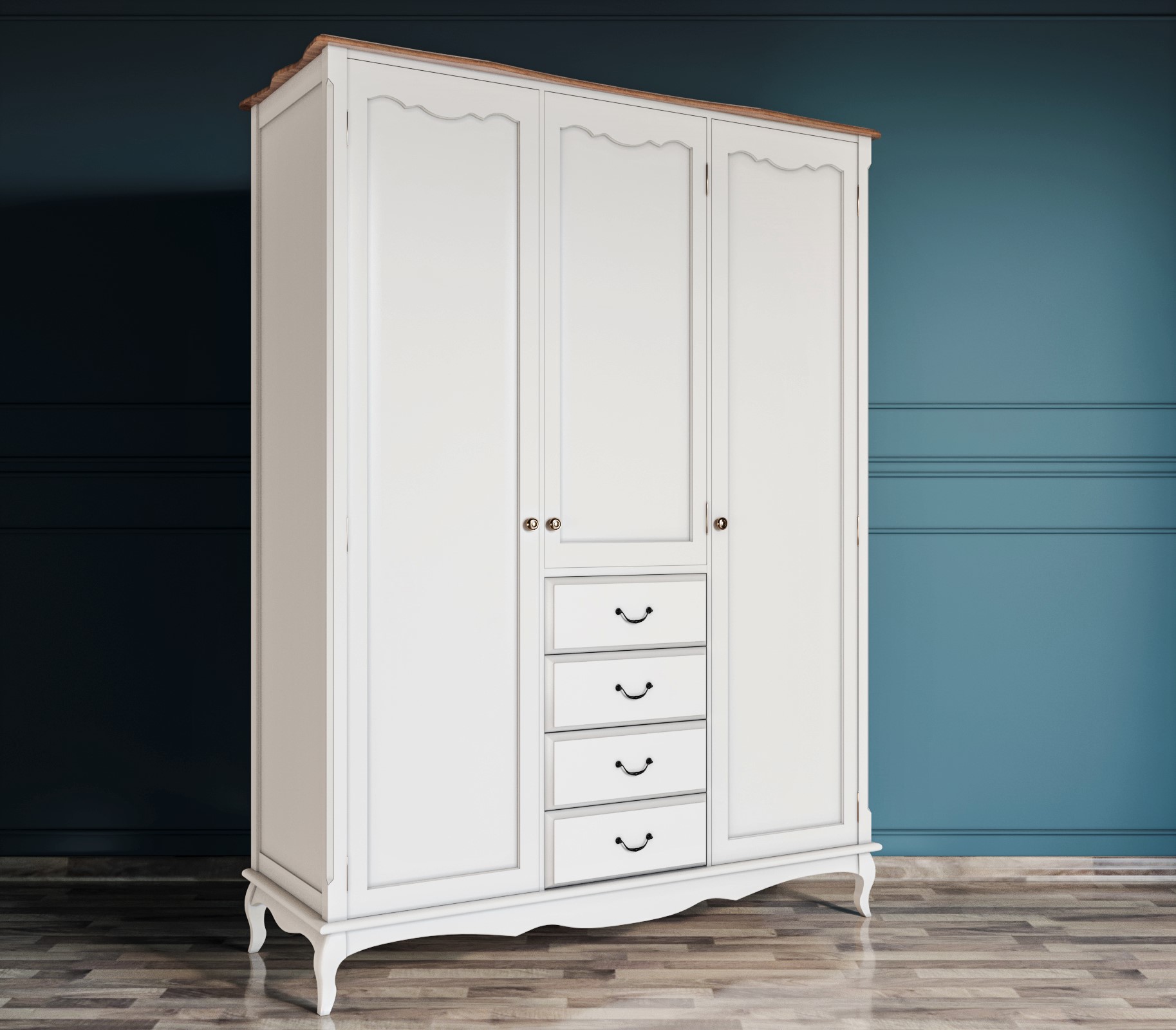 Шкаф "Leontina" для одежды с ящиками изготавливается вручную из массива березы.