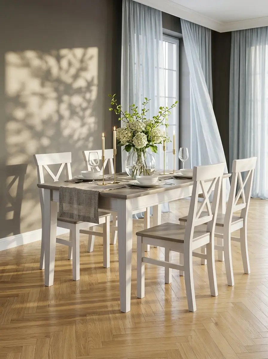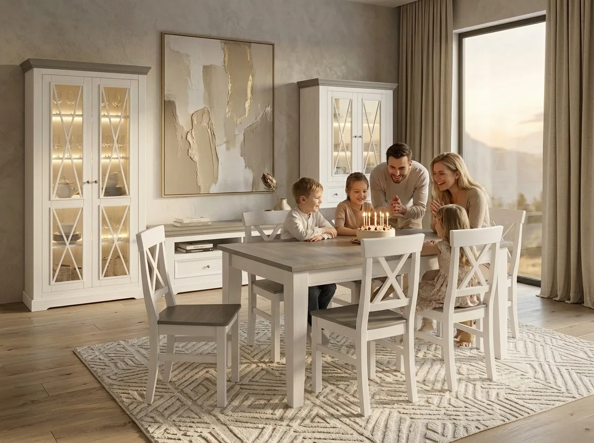 При своей внешней простоте стол обеденный Форест обладает превосходными прочностными характеристиками и строгой красотой. Скандинавский стиль, так популярный в последнее десятилетие, в котором выполнен стол Форест, можно охарактеризовать лаконичными и точными словами — «суровая красота». Отличительной чертой коллекции являются надежность, практичность, естественность, простота, удобство и функциональность. И самое главное — ЭКОЛОГИЧНОСТЬ! При производстве коллекции используется только высококачественная древесина сосны и экологически чистые отделочные материалы ведущего производителя красок в Швеции, компании Beckers, которая известна так же Российским потребителям. Размер стола 160х70х76 (ДхШхВ) позволяет при желании свободно разместить за столом 6 человек. В разложенном виде длина стола 199 см. Вставка 39 см. складывается и убирается внутрь стола. Фурнитура раздвижения производства Германии. Толщина столешницы 3 см. Покрытие стола белый, матовый лак, который имеет знак эко-качества «Скандинавский лебедь» и соответствует требованиям Европейского стандарта EN 71-3. Стол Форест поставляется в цвете – «белый воск/серый (антрацит)». Комбинация цвета подразумевает отделку столешницы стола в цвет «антрацит»(серый), остальная часть изделия в цвете «белый воск». Структура дерева слегка просвечивает. Стол поставляется в разобранном виде в двух упаковках. Укомплектован всей необходимой фурнитурой для дальнейшего полноценного использования. Так же в комплект вложена инструкция по сборке изделия. ВНИМАНИЕ!!! Для того что бы стол радовал Вас долгие годы, рекомендуем во время трапезы накрывать столешницу стола термостойкой скатертью или пользоваться специальными салфетками под обеденные приборы