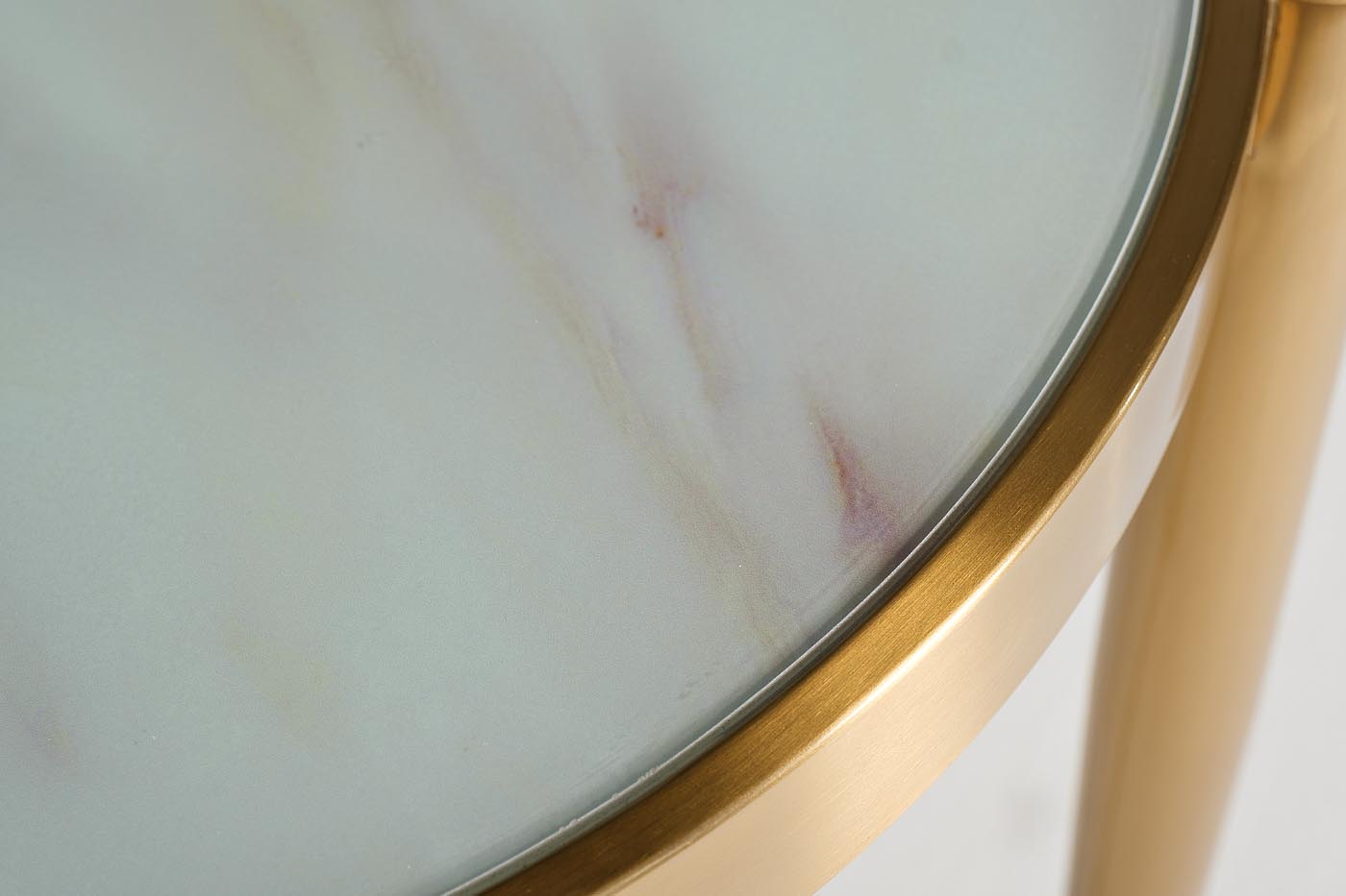 - Материал: столешница стеклянная, каркас - нерж. сталь золото матовый