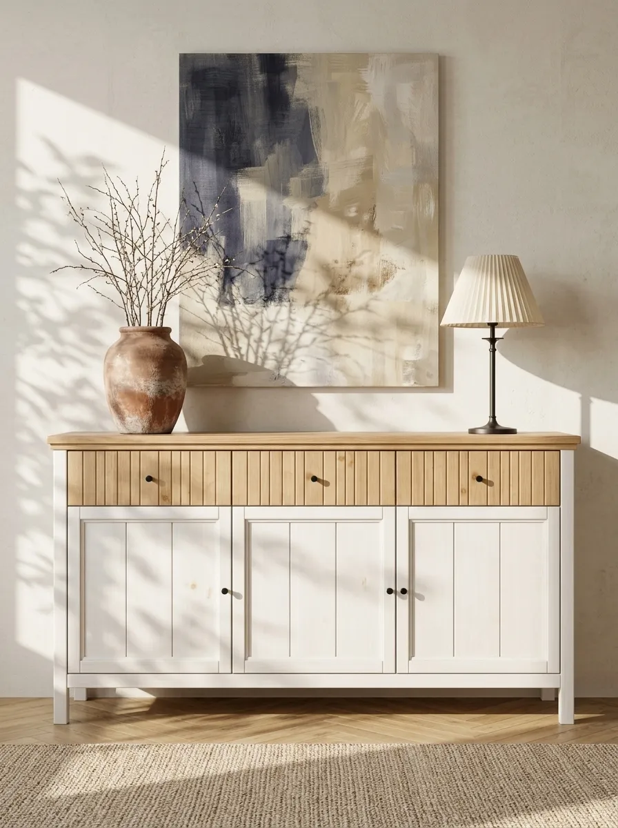 Тумба «Сканди 33» имеет три ящика на шариковых направляющих фирмы «Hafele» и три глухие дверки, за каждой из которых расположена полка. Это позволяет удобно хранить различные предметы, сохраняя порядок в комнате.